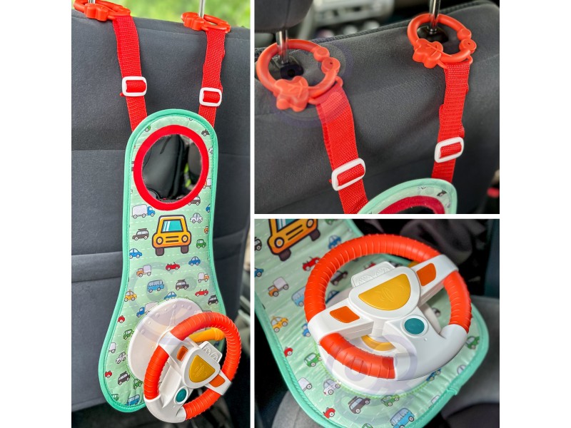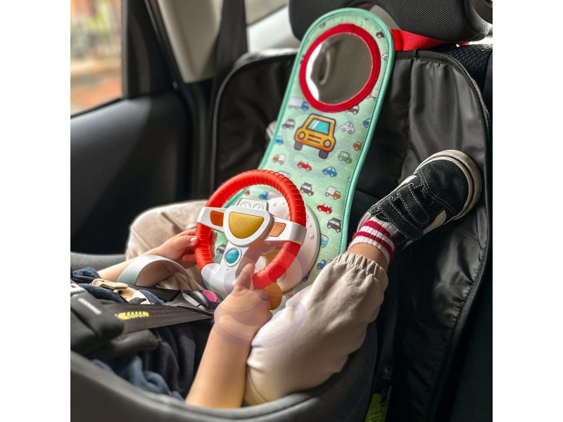 Interaktywna Kierownica do Samochodu od marki WOOPIE zapewni Twojemu dziecku niekończącą zabawę podczas długich podróży. Dziecko może naśladować zachowania rodzica, odgrywając rolę kierowcy. Dziecko może używać klaksonu, kierunkowskazów, kluczyka do uruchomienia silnika oraz patrzeć w plastikowe lusterko. Wszystkie elementy kierownicy wydają z siebie dźwięki i świecą, dodając uroku do zabawy. Dzieci uwielbiają naśladować dorosłych, a ta zabawka pozwala im to robić w bezpieczny i kontrolowany sposób. Wszystkie elementy zabawki są solidnie przymocowane, nie ma ostrych krawędzi, a kierownica jest łatwa do przymocowania do zagłówka przedniego siedzenia.