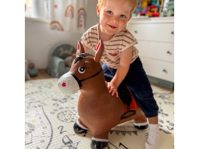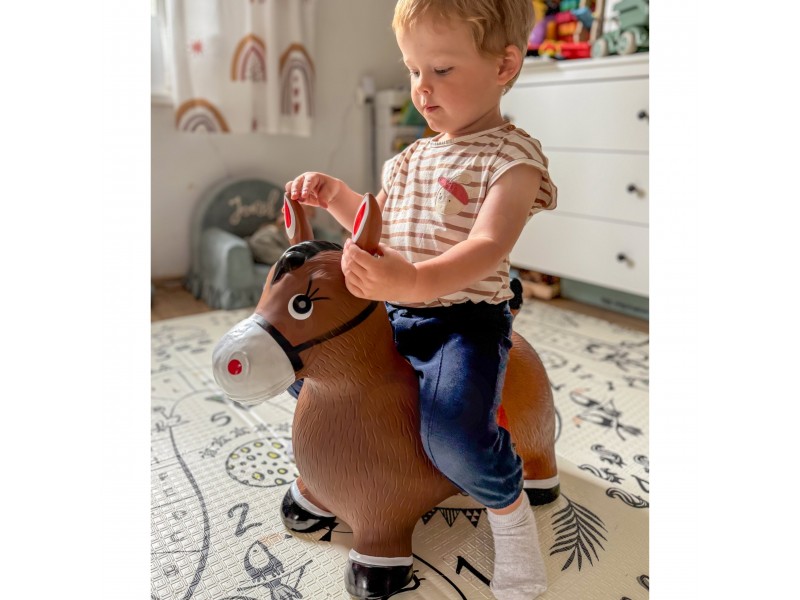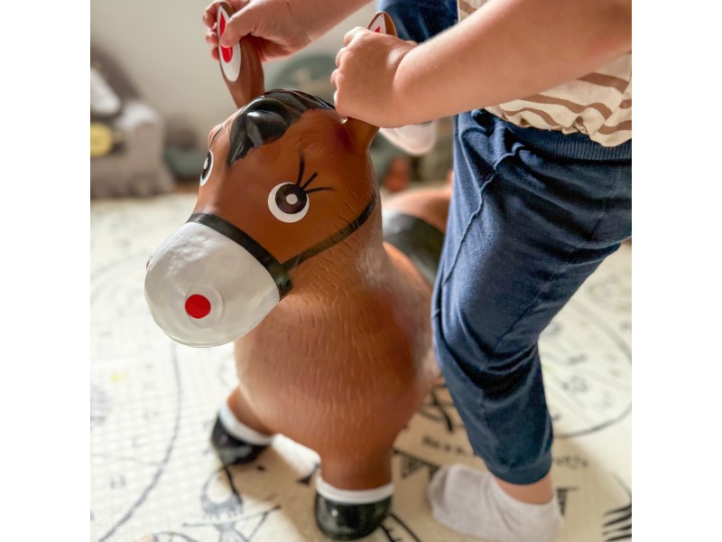Skaczący Konik-Zabawka Dmuchana od marki Woopie to wesoła i interaktywna zabawka, która dostarcza dzieciom mnóstwo radości z podskakiwania i aktywnej zabawy. Dzięki ergonomicznemu kształtowi, maluchy mogą swobodnie skakać, rozwijając jednocześnie zdolności motoryczne i równowagę. Zabawka zachęca do samodzielnej zabawy, ale świetnie sprawdzi się także podczas wspólnych harców z rówieśnikami lub dorosłymi.