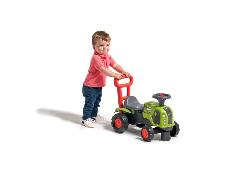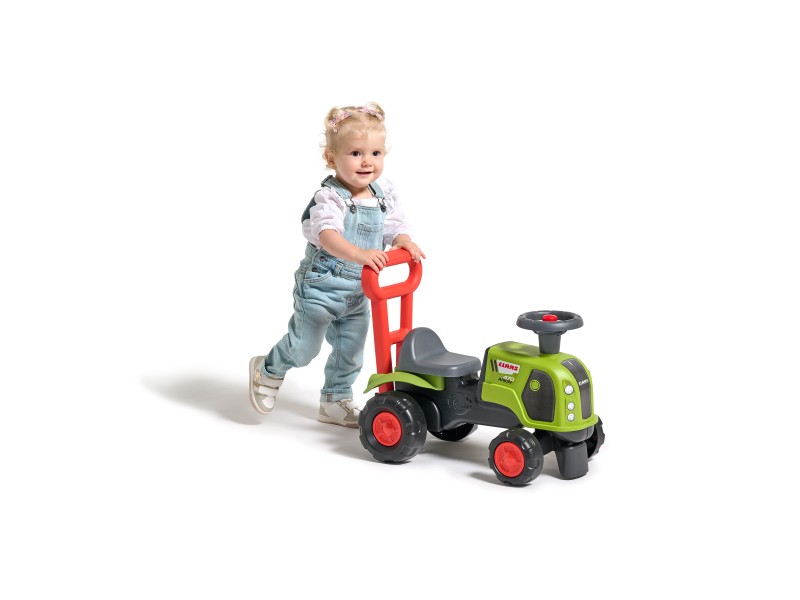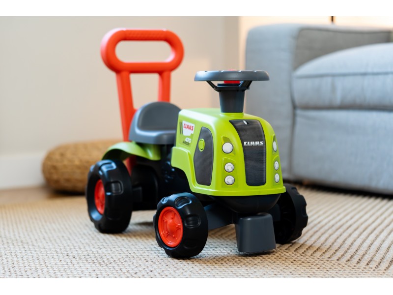 Jeździk Traktor Baby Claas to wyjątkowy pojazd stworzony przez renomowaną markę FALK, który stanowi idealne wprowadzenie do świata rolniczych przygód dla najmłodszych. Ta wierna replika ciągnika Claas Arion 470 została zaprojektowana z myślą o małych odkrywcach, łącząc w sobie funkcję klasycznego jeździka oraz praktycznego pchacza, który wspomaga naukę chodzenia. Wyprodukowany w 100% we Francji, ten ekologiczny traktor powstał w 90% z plastiku pochodzącego z recyklingu, co czyni go wyborem przyjaznym dla środowiska. Dzięki ergonomicznej budowie i wysokiemu oparciu, zabawka zapewnia maluchowi stabilność i bezpieczeństwo podczas pierwszych samodzielnych podróży po domu lub ogrodzie. Pojazd wyposażony jest w skrętną kierownicę z klaksonem, co pozwala dziecku na łatwe manewrowanie i dodatkową zabawę dźwiękową, stymulującą zmysł słuchu. Lekka, a zarazem wytrzymała konstrukcja sprawia, że traktor jest niezwykle zwrotny i łatwy w prowadzeniu nawet dla początkujących kierowców. Specjalne wgłębienie na kolano na siedzisku pozwala starszym dzieciom na wygodne odpychanie się jedną nogą, co zwiększa zakres wiekowy użytkowania zabawki. To doskonały pomysł na prezent, który łączy aktywność fizyczną z rozwijaniem wyobraźni.