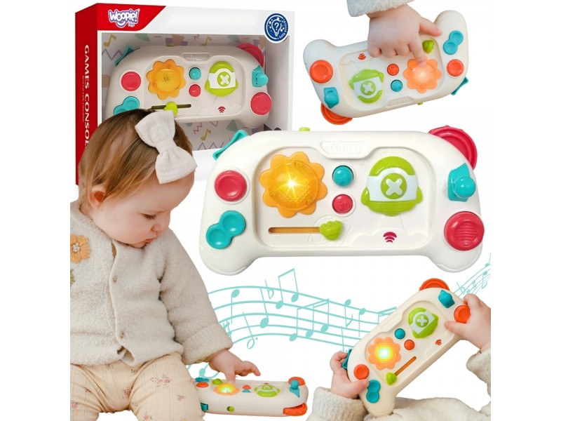 Interaktywny Joystic Pad od marki WOOPIE to wyjątkowa zabawka, która zainteresuje każde dziecko i pomoże w rozwijaniu zdolności motorycznych oraz zmysłowych. Zabawka wyposażona jest w ruchomą rakietę, dzięki której każdy maluch jest w stanie poszybować w krainę zabawy. Joystic wyposażony jest w 10 różnych ruchomych elementów posiadających funkcje światło i dźwięk. Dziecko podczas zabawy rozwija małą motorykę, poznaje kształty i dźwięki.