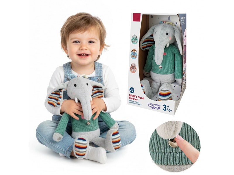 Interaktywny Słonik Przytulanka od marki WOOPIEBABY uspokoi oraz uśpi Twoje dziecko. Jest zarówno uroczym towarzyszem, miękkim i przytulnym, jak i doskonałym towarzyszem do gier i zabaw.