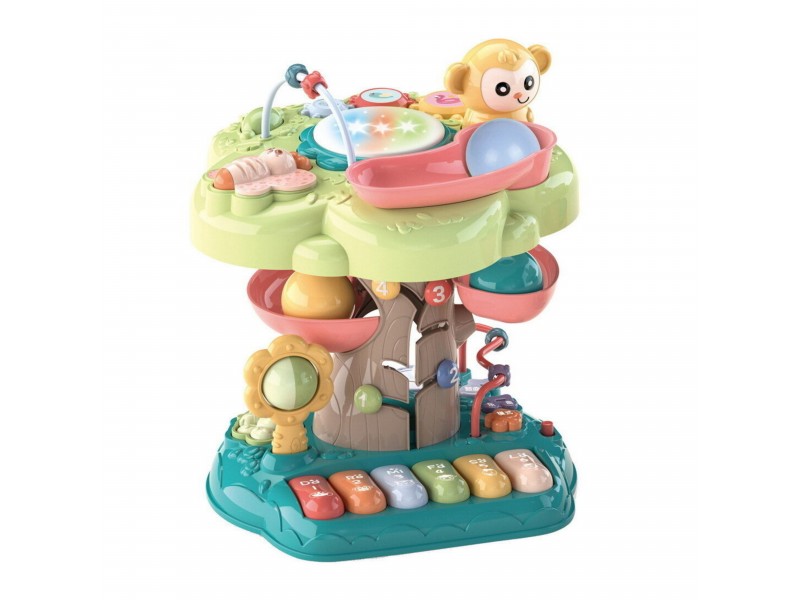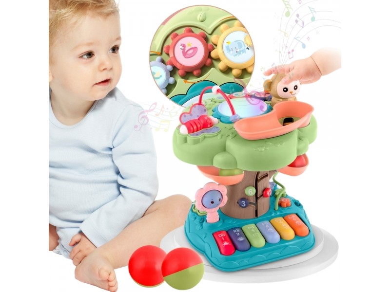 Oto wyjątkowe Interaktywne Drzewko Edukacyjne, które stanie się ulubioną zabawką Twojego dziecka. Te kolorowe centrum zabawy łączy w sobie elementy muzyczne, sensoryczne i logiczne, wspierając rozwój motoryki małej, koordynacji wzrokowo-ruchowej oraz pierwszych umiejętności poznawczych. Dzięki 14 zróżnicowanym funkcjom, zabawka dostarcza długotrwałej rozrywki i zachęca do nauki poprzez aktywną zabawę. Drzewko posiada szereg interaktywnych elementów – od grającego pianinka i świecącego bębenka, przez tor kulkowy, aż po małpkę zwalniającą kulki i kolorowe koraliki do liczenia. Każda funkcja została zaprojektowana z myślą o bezpiecznej i rozwijającej zabawie. Ilość funkcji i ruchomych elementów jest ogromna, a ich odkrywanie da twojemu dziecku mnóstwo frajdy.