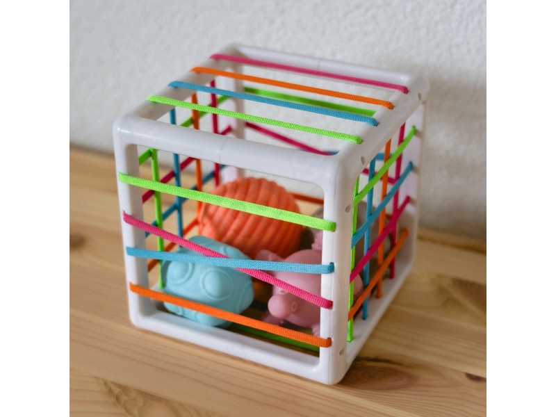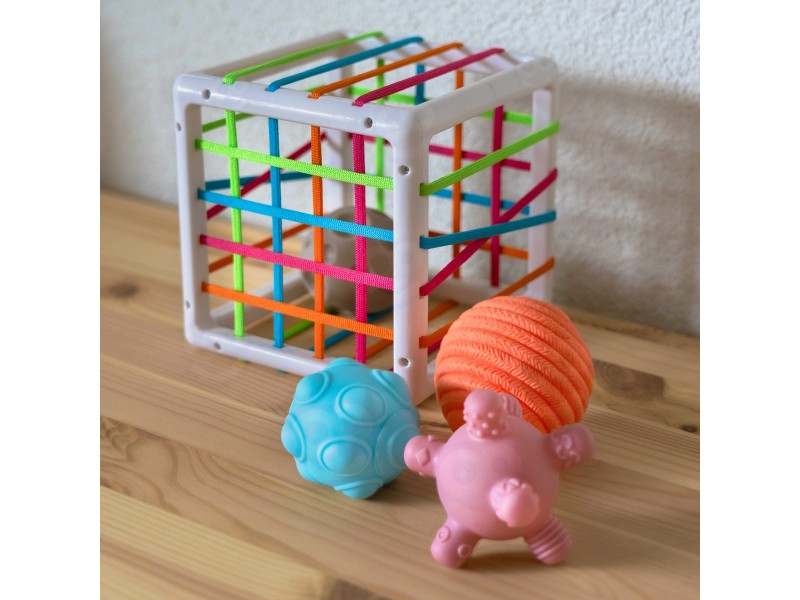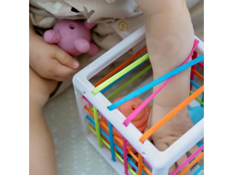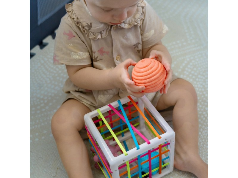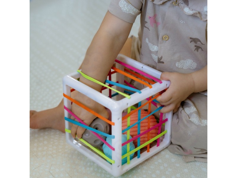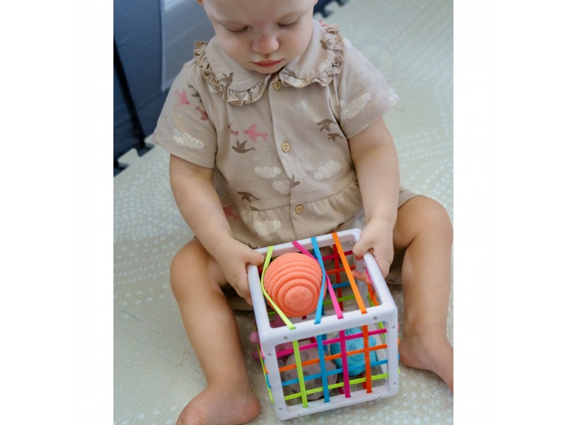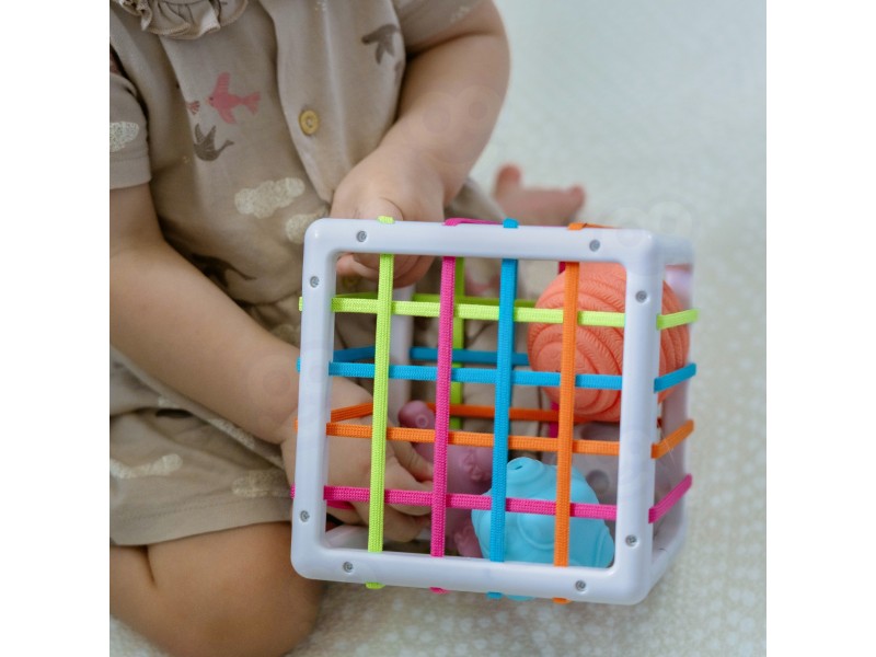 Elastyczna Kostka Sensoryczna od marki WOOPIE pobudzi rozwój Twojego dziecka! Zabawa dziecka polega na wkładaniu i wyjmowaniu elementów z edukacyjnej kostki. Dziecko podczas zabawy rozwija zmysły oraz poprawia zdolności manualne. Każdy z 4 klocków się wyróżnia, co budzi ciekawość dziecka na tyle, by chciało je wyciągnąć i włożyć z powrotem do sortera. Klocki posiadają równe kształty, tekstury tak aby rozwinąć sensoryke, umysł i zachwycić dziecko. Klocki dodatkowo można wykorzystać w celu nauki kształtów i kolorów. Kostka-sorter posiada elastyczne kolorowe gumeczki przyjemne dla dziecka. Niezbędna zabawka dla dziecka we wczesnym etapie życia!
