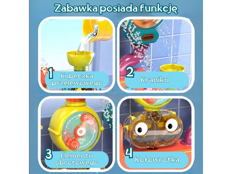 - - zestaw umili i skoncentruje dziecko podczas brania kąpieli
