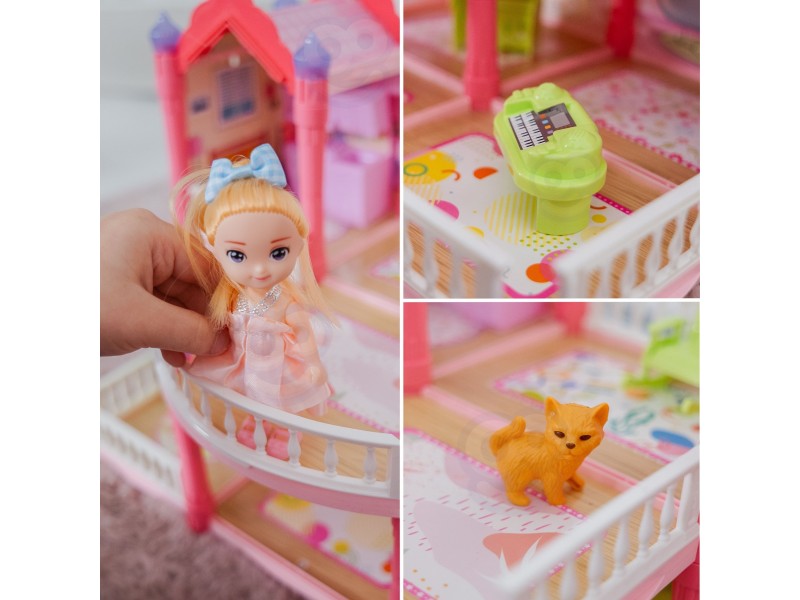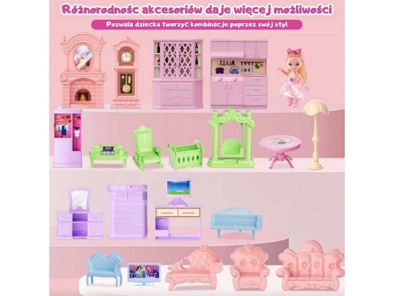 Willa Ogrodowa od marki Woopie to wyjątkowy domek dla lalek, który zapewni dzieciom godziny magicznej zabawy i twórczego projektowania! Zabawka przenosi maluchy do bajkowego świata, gdzie mogą tworzyć własne opowieści, aranżować wnętrza i odgrywać role ulubionych postaci. To coś więcej niż zabawka – to cały świat, który dziecko może stworzyć samodzielnie! Wyjątkowa dwupiętrowa konstrukcja z pięknymi detalami wieloma pomieszczeniami, tarasem, realistycznym wyposażeniem i świecącymi wieżyczkami sprawia, że domek wygląda jak prawdziwy pałac księżniczki! Kolorystyka utrzymana jest w delikatnych pastelach – róż, fiolet i mięta tworzą przyjazną atmosferę zachęcającą do kreatywnej zabawy. Idealnie nada się do zabawy w gronie przyjaciół lub rodzeństwa.