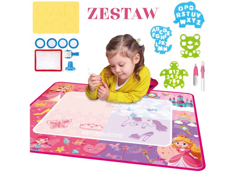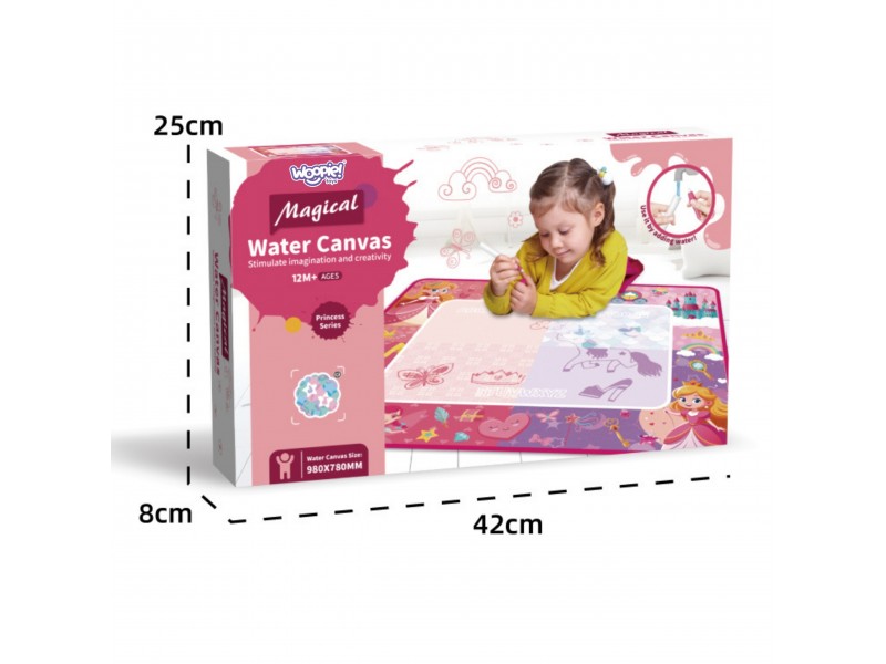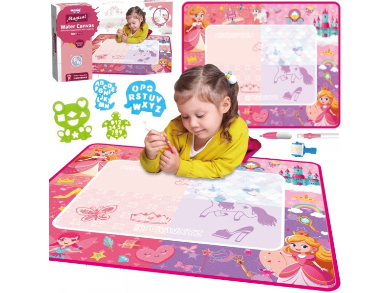 Odkryj magiczną zabawę bez bałaganu! Mata wodna Magical Water Canvas od marki Woopie to kreatywna przestrzeń, na której dziecko może rysować i malować tylko za pomocą wody. Wystarczy napełnić specjalny pisak wodą, aby tworzyć kolorowe obrazki, które po chwili znikają i ustępują miejsca nowym dziełom. Mata ma uroczy motyw księżniczek, dzięki czemu każda mała artystka poczuje się wyjątkowo. To doskonała zabawka dla dzieci już od 12 miesiąca życia – rozwija wyobraźnię, kreatywność i zdolności manualne.
