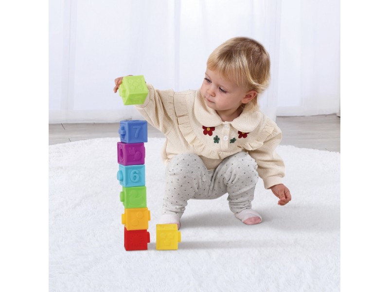 - - 8 miękkich, gumowych klocków sensorycznych ze zwierzętami, figurami geometrycznymi do dopasowywania kształtów, cyferkami itd.