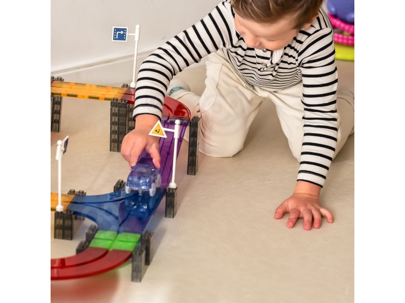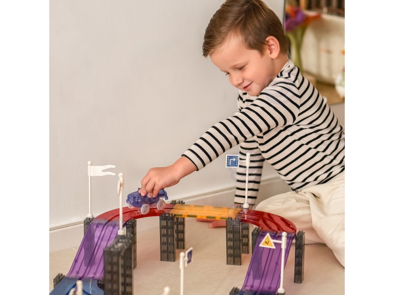 Magnetyczny Tor Wyścigowy marki Woopie to wyjątkowa zabawka, która rozbudzi kreatywność każdego dziecka i zamieni zabawę w niesamowitą przygodę pełną świateł i kolorów! Dzięki łatwym do łączenia magnetycznym elementom maluchy mogą samodzielnie budować różnorodne, wielopoziomowe tory, po których porusza się świecące autko. Przezroczyste, barwne części i efektowne światła LED sprawiają, że zabawa przyciąga uwagę oraz daje mnóstwo radości zarówno w dzień, jak i wieczorem.