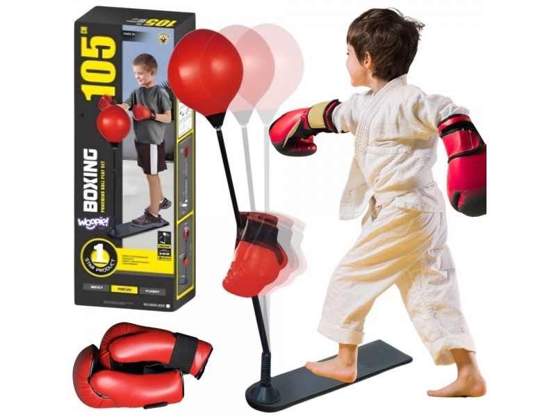 Zestaw bokserski Stojąca Regulowana Gruszka od marki Woopie to idealna propozycja dla dzieci, które chcą aktywnie spędzać czas i poczuć się jak prawdziwi mistrzowie ringu! Zabawka zapewnia mnóstwo radości, pozwala wyładować energię i doskonalić swoje umiejętności, a przy tym gwarantuje świetną zabawę w domu i na świeżym powietrzu. W komplecie znajdują się rękawice bokserskie oraz regulowany stojak z gruszką, dzięki czemu zestaw dopasowuje się do jego potrzeb.