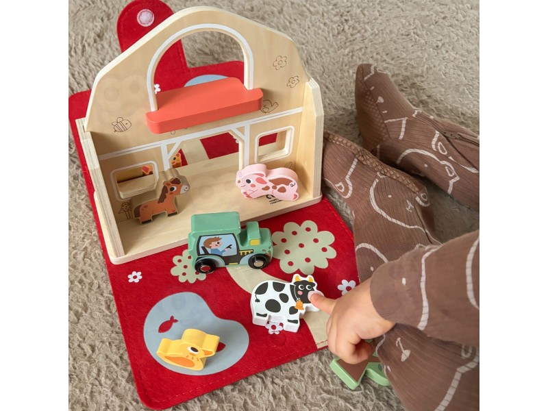 Witaj w zaczarowanym świecie wiejskiego życia, gdzie każde zwierzątko ma swoją historię! Ten uroczy, drewniany zestaw to idealna propozycja dla małych miłośników zwierząt i przygód na farmie. Przenośna farma, która łatwo się składa, skrywa w sobie całą gromadę figurek i akcesoriów, by Twój maluch mógł odgrywać niezliczone scenki i tworzyć własne, fascynujące opowieści. To doskonała zabawka, która rozwija kreatywność i dostarcza godzin wspaniałej, edukacyjnej zabawy, gdziekolwiek jesteście!