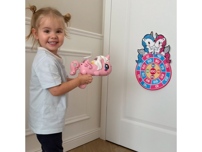 Wkrocz do magicznego świata rywalizacji i zręczności z grą zręcznościową od marki Woopie! Ten uroczy zestaw pozwoli Twojemu dziecku rozwijać celność i koordynację w bezpieczny i fascynujący sposób. Wyrzutnia w kształcie uroczego jednorożca strzela specjalnymi kulkami, które magicznie przyklejają się do tarczy dzięki rzepom. Idealna do zabawy w domu i na zewnątrz, zapewniająca godziny wciągającej rozrywki i pomagająca w doskonaleniu precyzji!