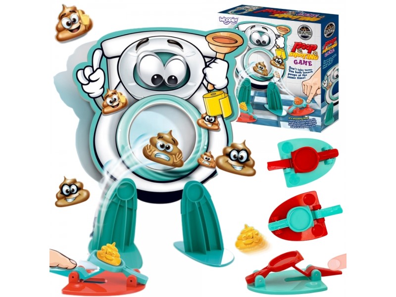 Strzał Kupą marki WOOPIE to szybka gra rodzinna, w której dwoje graczy jednocześnie wystrzeliwuje plastikowe „kupki” z wyrzutni do wesołego sedesu, kto pierwszy wyczyści swoją stronę, wygrywa! Lekka konstrukcja, gładkie krawędzie i prosta obsługa sprawiają, że to idealna zabawa na rodzinne wieczory, imprezy i prezent z humorem dla dzieci
