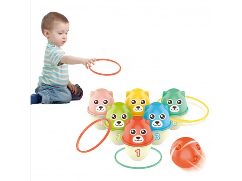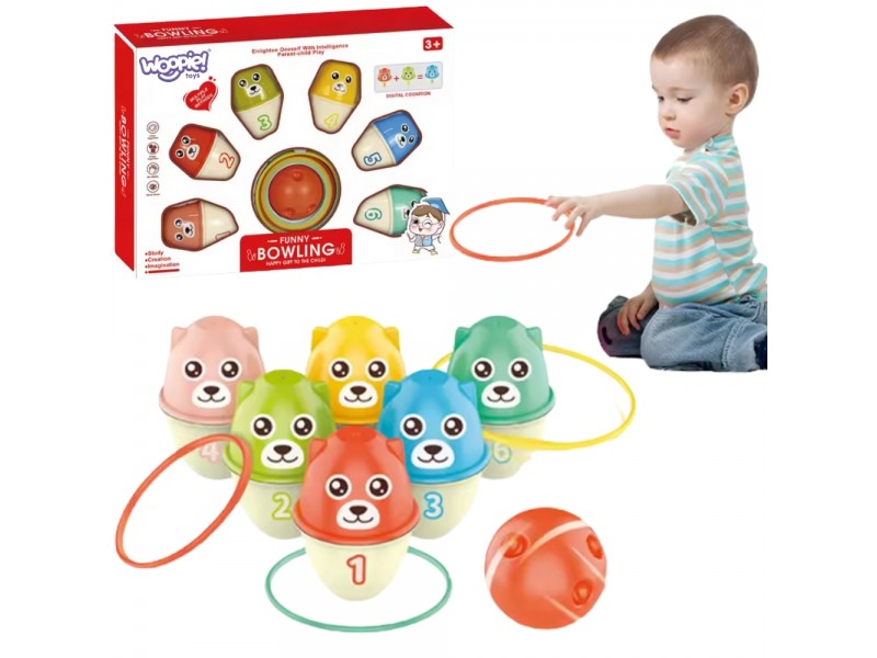 - - Zestaw kręgli – kolorowe misie z numerkami