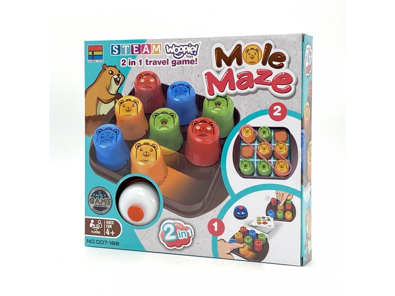 Gra MOLE MAZE to gra edukacyjna niezwykle wciągająca. Oferuje ona unikalne połączenie rozrywki i wartości edukacyjnych. Gra przeznaczona jest dla 1-2 graczy. Dzięki wielu sposobom gry, MOLE MAZE idealnie nadaje się do gry i nauki w podróży. Gra zawiera kolorowe karty, które zachęcają dzieci do zabawy. Dostępna jest dla młodszych dzieci jak i starszych. Gra poprawia umiejętności rozwiązywania problemów, świadomość przestrzenną, rozwija myślenie oraz koordynację wzrokową. Gra posiada przenośną konstrukcję, dzięki czemu jest wygodna podczas wycieczek.