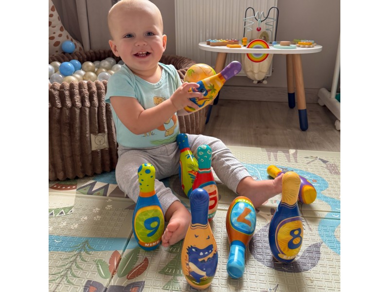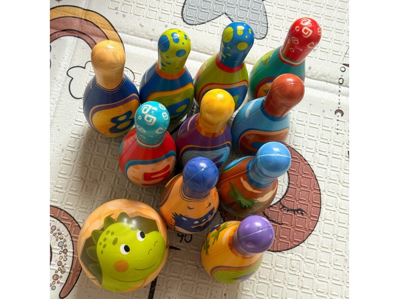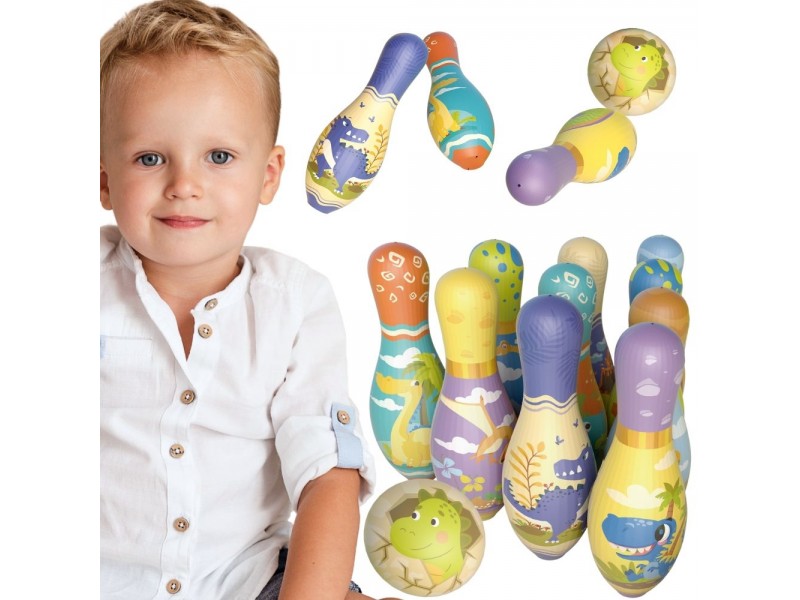 - - Kręgle z atrakcyjnymi, kolorowymi motywami dinozaurów