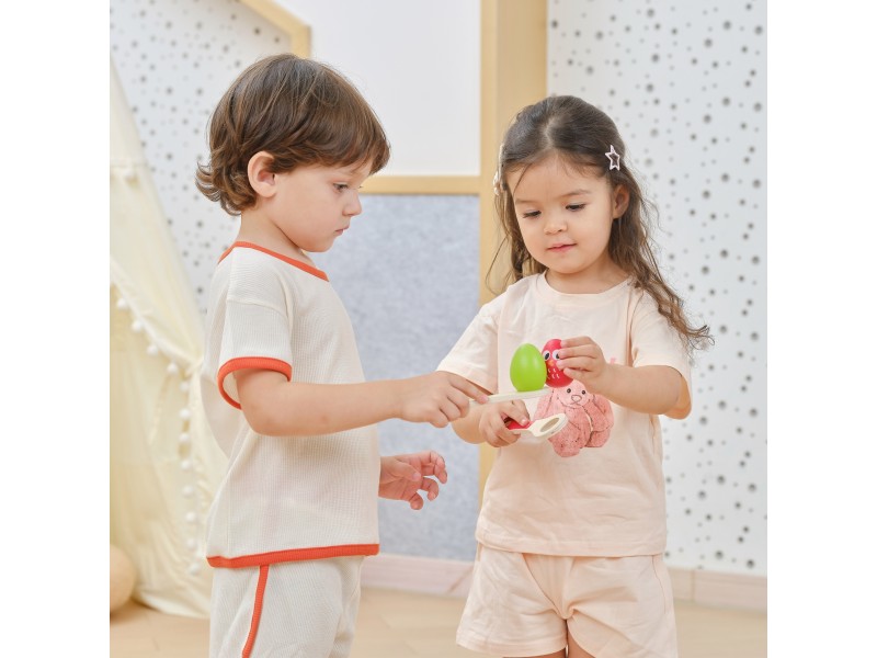 Wyścig Jajek i Łyżek od marki VIGA to wciągająca gra ruchowa dla dzieci i dorosłych. Gracze ścigają się, niosąc jajko na łyżce – celem jest dotarcie do mety bez jego upuszczenia. Dwa poziomy trudności oraz zabawne postacie jajek sprawiają, że rozgrywka jest dynamiczna, a jednocześnie rozwija koordynację i koncentrację.