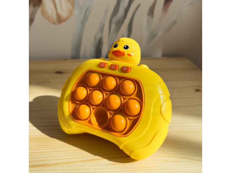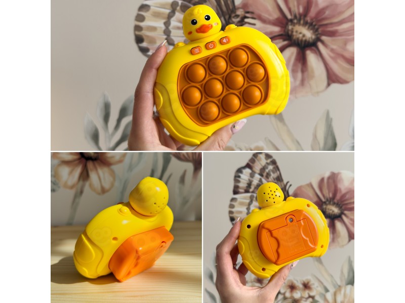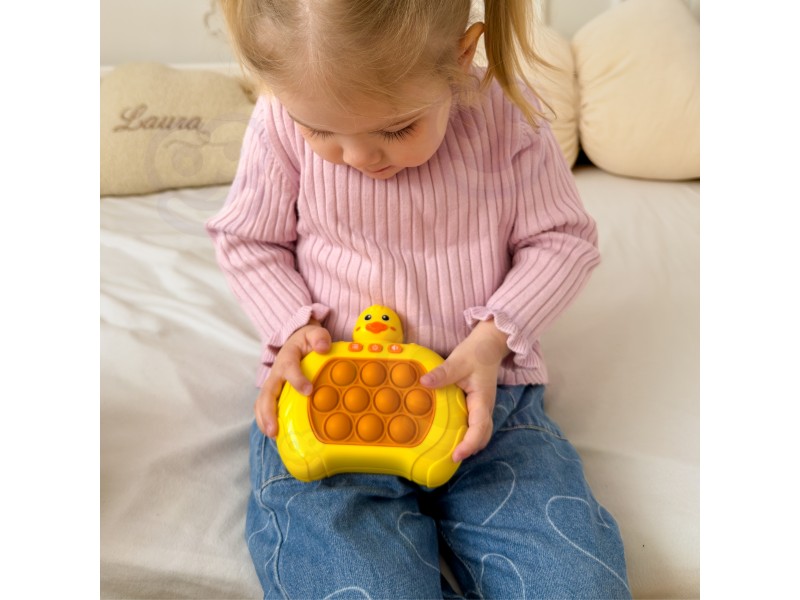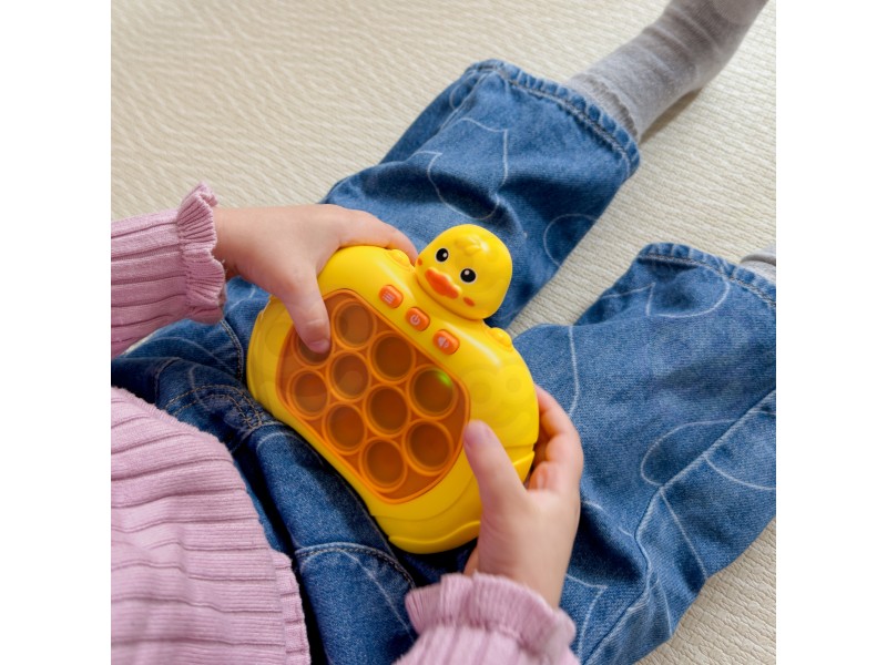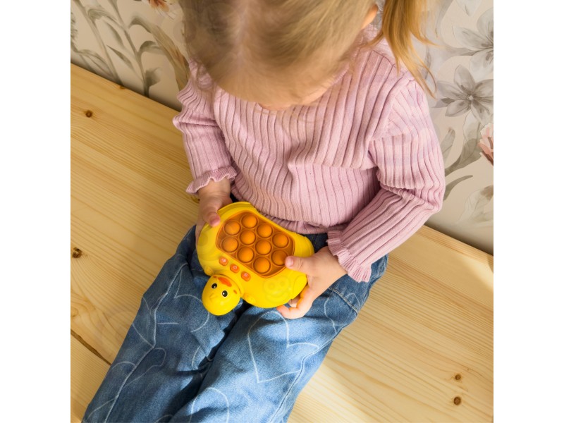 Gra POP IT Kaczka to zabawka antystresowa, która sprawdzi się już dla najmłodszych. Gra wydaje radosne dźwięki, które zachęcają dzieci do zabawy i urozmaicają rozgrywkę. Zabawka jest niewielka więc, sprawia, że możemy zabrać ją ze sobą. Pop It sprawia frajdę dzieciom oraz dorosłym, którzy chętnie po nią sięgają. Rozwija umysł, zdolności manualne, koordynację wzrokowo-ruchową oraz trenuje spostrzegawczość i pomaga w walce ze stresem.