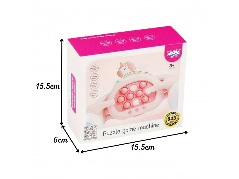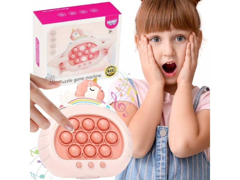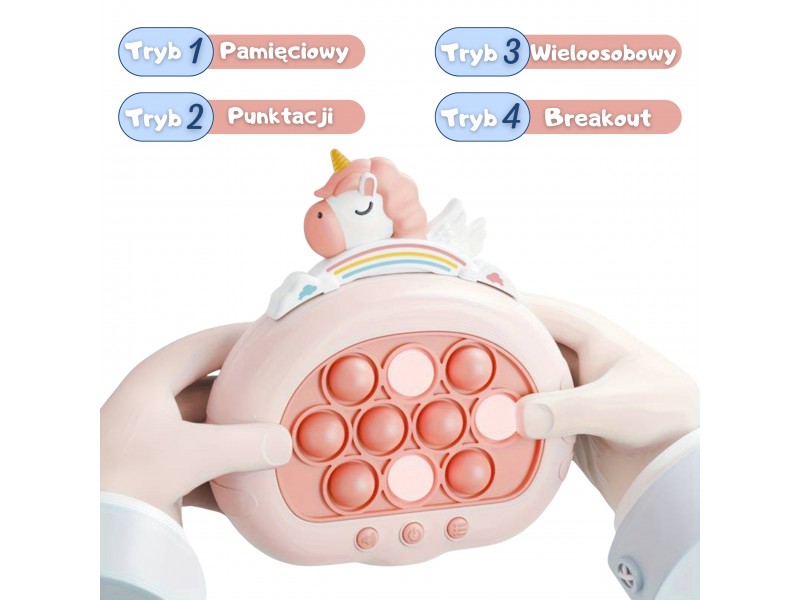 Gra POP IT Jednorożec interaktywna,interaktywne,zręcznościowa,gra,gry,woopie,antystresowa,antystresowe,game,zręcznościowe,wciskanieto zabawka antystresowa, która sprawdzi się już dla najmłodszych. Gra wydaje radosne dźwięki, które zachęcają dzieci do zabawy i urozmaicają rozgrywkę. Zabawka jest niewielka więc, sprawia, że możemy zabrać ją ze sobą. Pop It sprawia frajdę dzieciom oraz dorosłym, którzy chętnie po nią sięgają. Rozwija umysł, zdolności manualne, koordynację wzrokowo-ruchową oraz trenuje spostrzegawczość i pomaga w walce ze stresem.