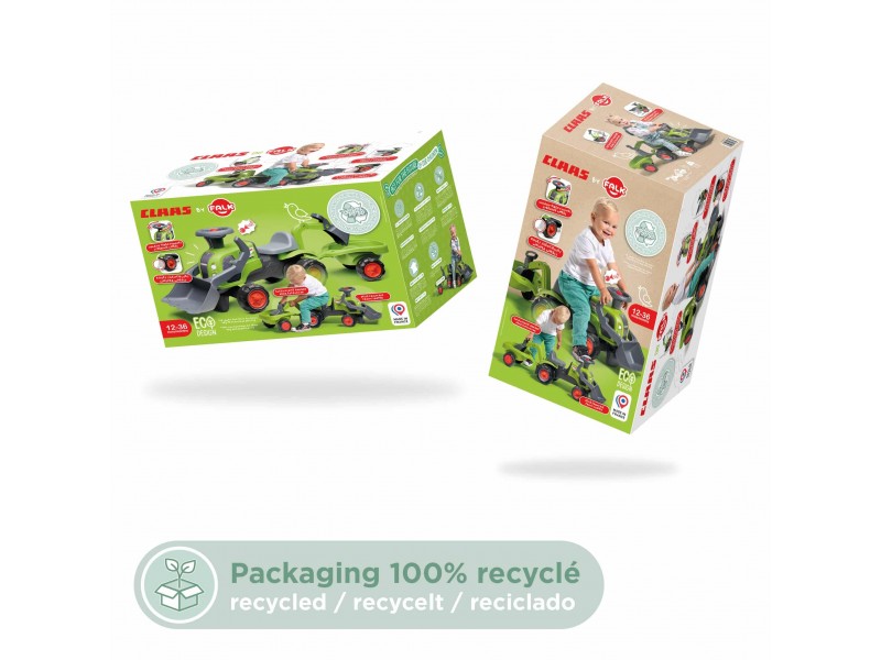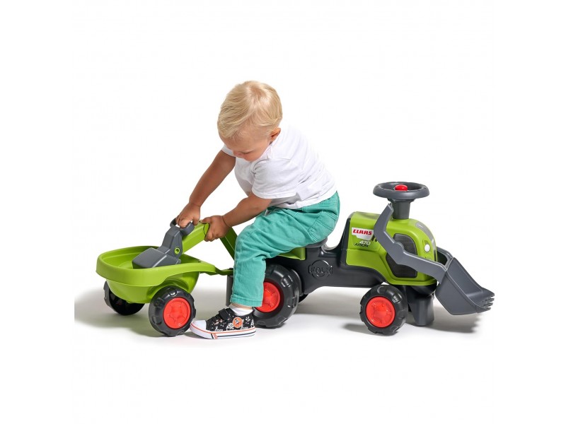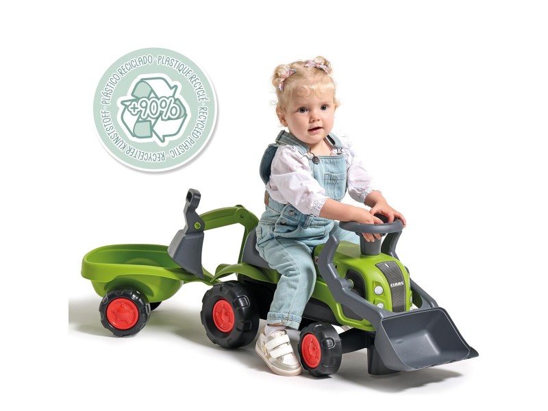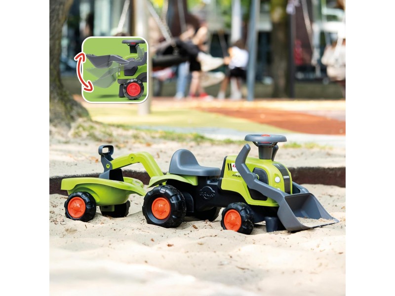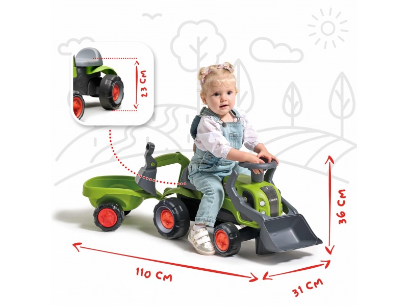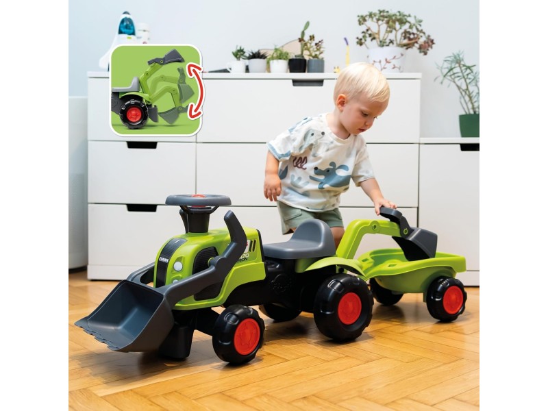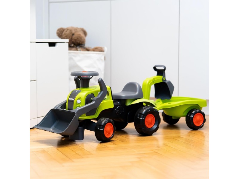FALK Jeździk Traktor Claas z Koparką i Przyczepą to wszechstronny pojazd dla najmłodszych budowniczych. Ten licencjonowany traktor, wierna replika modelu Claas Arion 470, został zaprojektowany specjalnie dla dzieci, które stawiają swoje pierwsze kroki. Wyprodukowany we Francji z dbałością o ekologię, w 90% z tworzywa pochodzącego z recyklingu, jest wytrzymały i bezpieczny. Dzięki wyposażeniu w przednią łyżkę, tylną koparkę oraz przyczepkę, maluch ma nieskończone możliwości zabawy w domu i ogrodzie. Kierownica z klaksonem pozwala małemu operatorowi sygnalizować swoją obecność, a solidne koła zapewniają stabilność podczas pracy na "budowie".