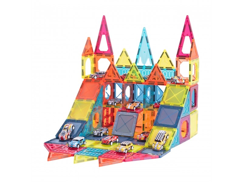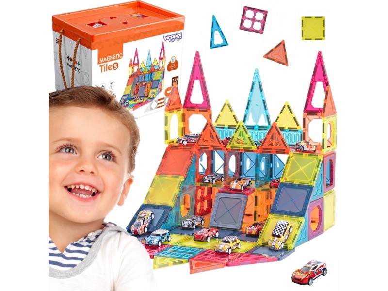 Zestaw magnetycznych klocków marki Woopie to wyjątkowa zabawka, która dzięki silnym magnesom neodymowym, kolorowym płytkom i 20 mini samochodom dzieci mogą eksperymentować z budową spektakularnych parkingów wielopoziomowych, garaży i ramp, rozwijając przy tym swoje zdolności manualne oraz wyobraźnię przestrzenną. Prosta konstrukcja i duże możliwości sprawiają, że zabawka jest wygodna i atrakcyjna