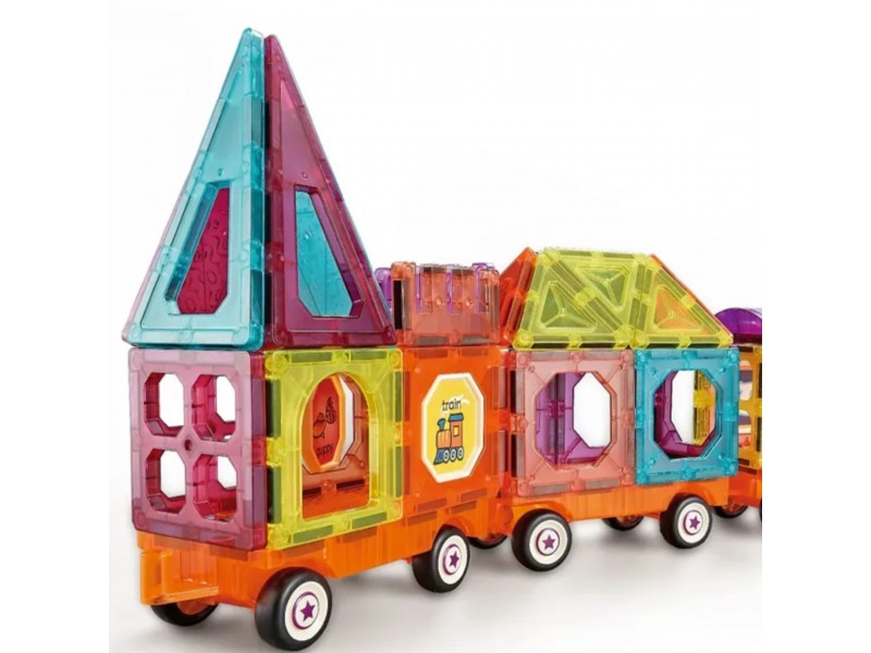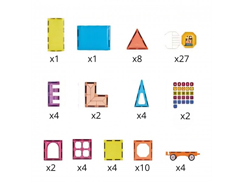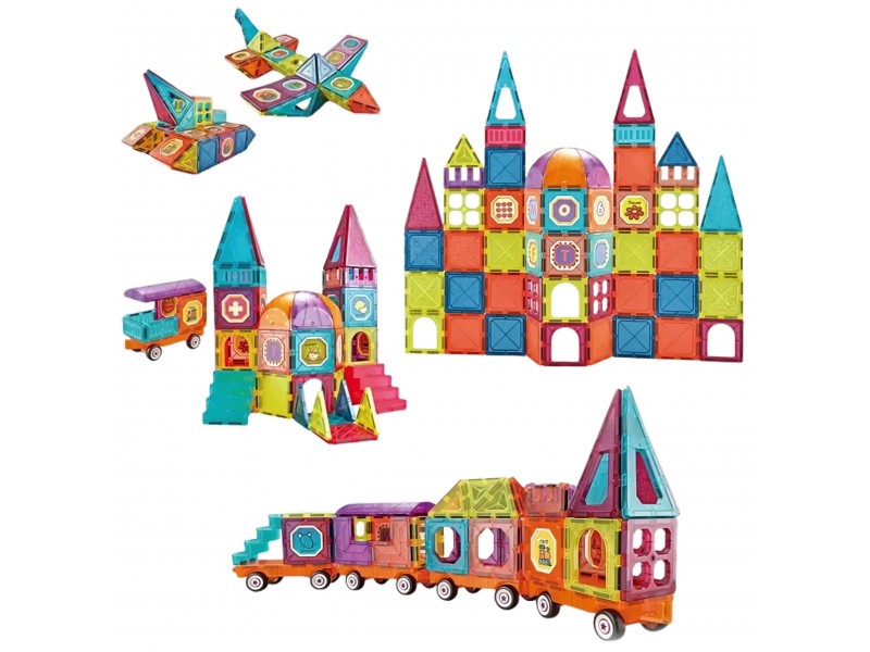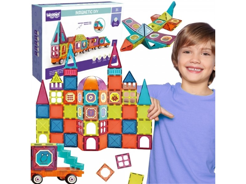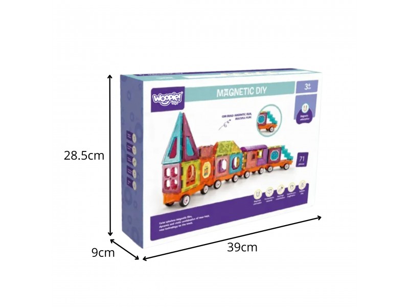 - - W zestawie 71 elementów, w tym magnetyczne płytki, koła i figurki.