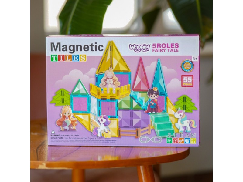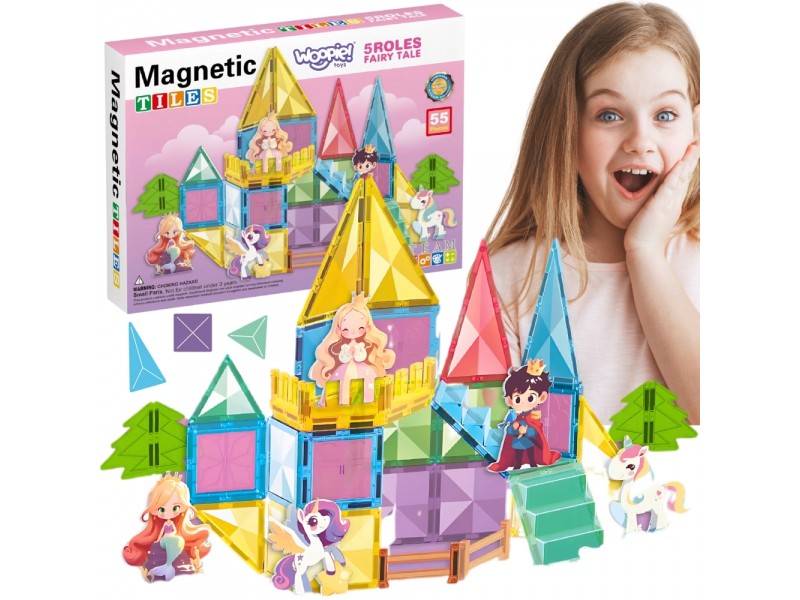Ten unikatowy zestaw klocków magnetycznych od marki Woopie zabierze Twoje dziecko w świat kreatywnej zabawy i baśniowych opowieści! Dzięki 55 kolorowym elementom, takim jak magnetyczne płytki, schody i płotki, oraz uroczym figurkom, Twoja pociecha może stworzyć magiczny zamek dla księżniczki, księcia i jednorożców. Budowanie z magnetycznych klocków rozwija zdolności manualne, wyobraźnię i myślenie przestrzenne, a zabawa figurkami zachęca do odgrywania ról.