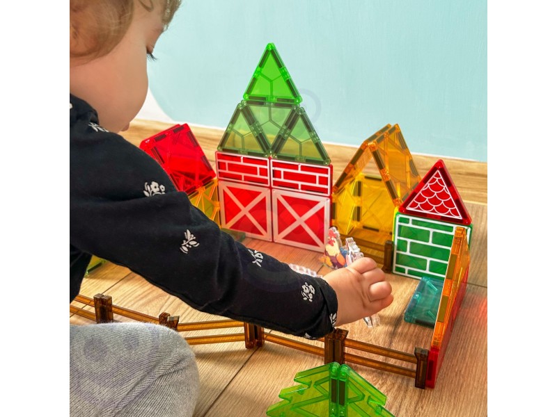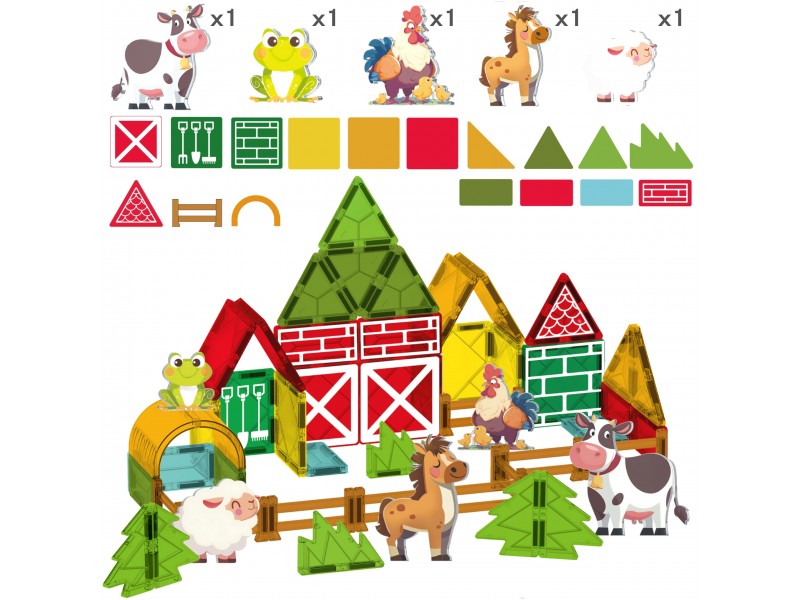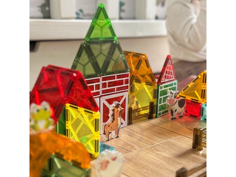 Zestaw magnetycznych klocków konstrukcyjnych marki Woopie to wyjątkowa zabawka, która pozwoli dziecku na zbudowanie swojej własnej farmy Dzieci mogą wznosić stodoły, ogrodzenia dla zwierząt, budować silosy i inne budynki gospodarcze, eksperymentując z różnymi konfiguracjami. Magnetyczne połączenia sprawiają, że konstrukcja własnej farmy jest łatwa i przyjemna, a każda budowla pozostaje stabilna podczas zabawy.