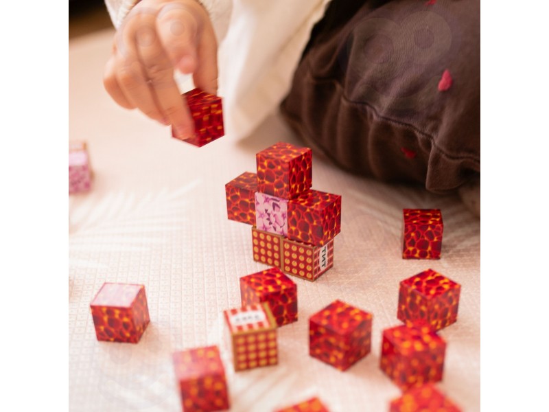 - - 74 magnetyczne sześciany w różnorodnych kolorach i wzorach