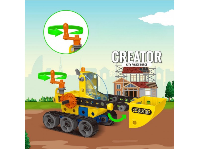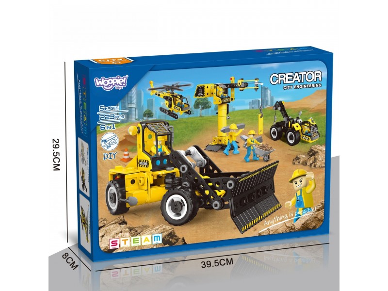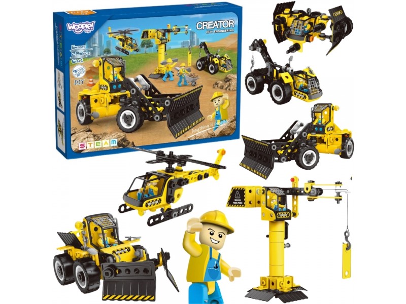 Zbuduj własne pojazdy i maszyny policyjne z serii CREATOR City Police Force! od marki Woopie Ten zestaw konstrukcyjny typu DIY to idealna propozycja dla małych inżynierów i pasjonatów budowania. Dzięki elementom STEAM dziecko rozwija kreatywność, logiczne myślenie oraz zdolności manualne. Z jednego kompletu można stworzyć aż 6 różnych modeli – od helikoptera po pojazdy terenowe z chwytakiem. To nie tylko zabawa, ale także świetna nauka i wprowadzenie w świat techniki.