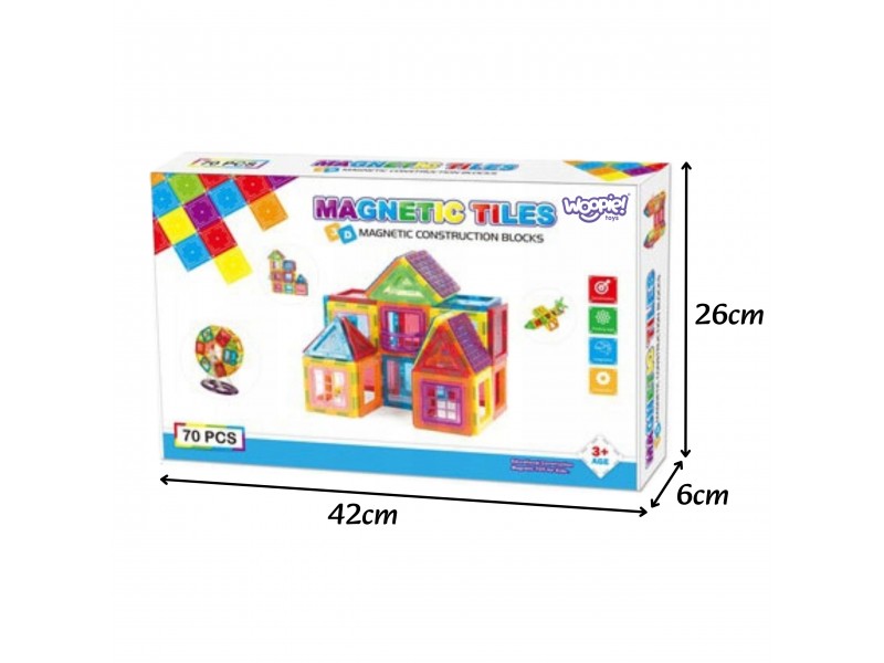 Odkryj fascynujący świat kreatywnej zabawy z klockami magnetycznymi 3D od marki Woopie! Ten zestaw 70 elementów pozwala budować niesamowite figury przestrzenne, rozwijając wyobraźnię dziecka. Klocki są lekkie, trwałe i łatwe w łączeniu dzięki wbudowanym magnesom neodymowym. Zabawa nimi wspiera rozwój manualny, koncentrację i umiejętność logicznego myślenia. Intensywne kolory stymulują zmysł wzroku, a różnorodność kształtów zachęca do eksperymentowania i kreatywnego tworzenia.