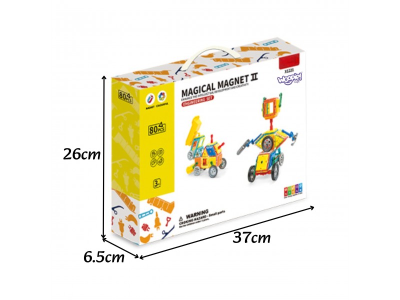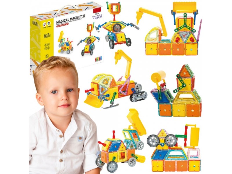Odkryj świat kreatywnej zabawy z innowacyjnym zestawem klocków magnetycznych 3D od marki Woopie! Ten 80-elementowy zestaw to fantastyczny sposób na rozwijanie wyobraźni i umiejętności inżynierskich u Twojego dziecka. Klocki magnetyczne pozwalają na tworzenie trójwymiarowych konstrukcji, w tym realistycznych pojazdów budowlanych, takich jak wywrotka, spychacz/ładowarka, a także robotów. Żywe kolory i różnorodne kształty geometryczne (kwadraty, trójkąty, trapezy) w połączeniu z elementami pojazdów (koła, podwozia, elementy łyżki/wywrotki) zapewniają nieograniczone możliwości budowania i przekształcania. Magnetyczne łączenia sprawiają, że konstrukcje są stabilne i łatwe w montażu, co jest idealne dla małych rączek. To edukacyjna zabawka STEM (Science, Technology, Engineering, Mathematics), która inspiruje do nauki poprzez zabawę. Zabawa klockami magnetycznymi wspiera rozwój zdolności motorycznych i uczy podstaw geometrii oraz fizyki, prezentując zjawisko magnetyzmu w praktyczny sposób. Duża liczba elementów, w tym specjalne części do budowy pojazdów i maszyn, gwarantuje godziny fascynującej, rozwijającej rozrywki. Postaw na jakość i innowacyjność, wybierając zestaw klocków magnetycznych 3D od marki Woopie!