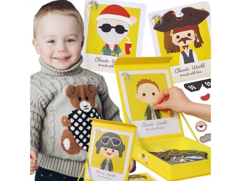 Układanka Magnetyczna od marki CLASSIC WORLD zajmie dziecko na długi czas. Zestaw zawiera aż 32 elementy w tym 8 kart ze wzorami chłopców w przebraniach do ułożenia. Dziecko może dowolnie łączyć elementy tworząc różne odlotowe modne kreacje i wyglądy. Mocne magnesy zapewniają, że żaden element nigdy nie spadnie. Opakowanie jest poręczne, dzięki czemu można je zabrać wszędzie. Zabawa rozwinie wyobraźnię i kreatywność Twojego dziecka.
