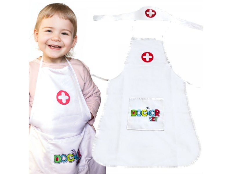 - - czepek pielęgniarski i fartuszek – oba w kolorze białym z przyciągającym wzrok symbolem pomocy medycznej.