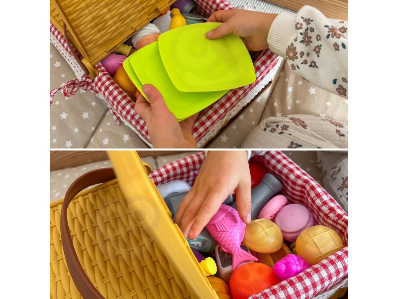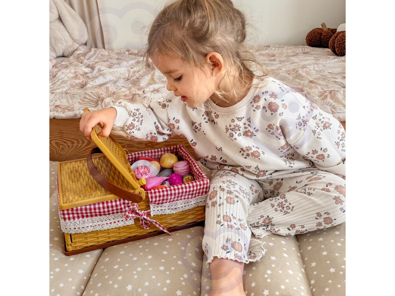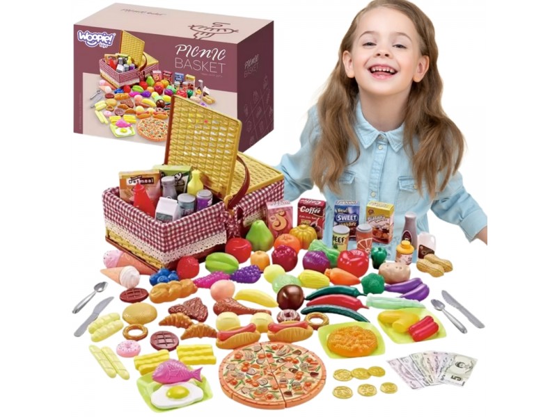 Kosz piknikowy dla dzieci od marki Woopie to prawdziwa gratka dla małych miłośników zabawy w dom, sklep czy gotowanie! To doskonała zabawka do wspólnego spędzania czasu z rodziną! Zabierz koszyk do ogrodu, na taras, plażę czy piknik w parku i zorganizuj małe przyjęcie pod gołym niebem. Dzieci mogą samodzielnie rozkładać jedzenie, przygotowywać posiłki dla misiów i lalek lub częstować rodziców pizzą i deserem. Zestaw ten przenosi dziecko w świat odgrywania ról, interakcji społecznych i kulinarnych przygód, jednocześnie wspierając jego rozwój. Wspólne posiłki na świeżym powietrzu, nawet w formie zabawy, uczą kultury jedzenia, dzielenia się i rozwijają wrażliwość społeczną. Dzięki aż 103 realistycznym elementom, zabawa staje się niesamowicie różnorodna i inspirująca. Zestaw zapakowany jest w uroczy koszyk piknikowy z rączką i zamykanym wieczkiem, który swoim wyglądem przypomina klasyczny wiklinowy kosz – ozdobiony czerwono-białą kratką i koronkową tasiemką . Jest łatwy w złożeniu i rozłożeniu, dzięki czemu doskonale sprawdzi się zarówno w domu, jak i w podróży. Całość została wykonana z trwałych, bezpiecznych materiałów, które spełniają wszystkie normy bezpieczeństwa dla dzieci. Dzięki temu zestawowi Twoje dziecko może bawić się samotnie lub z rodzeństwem i przyjaciółmi, ucząc się dzielenia, planowania posiłków i podstawowych zasad handlu.
