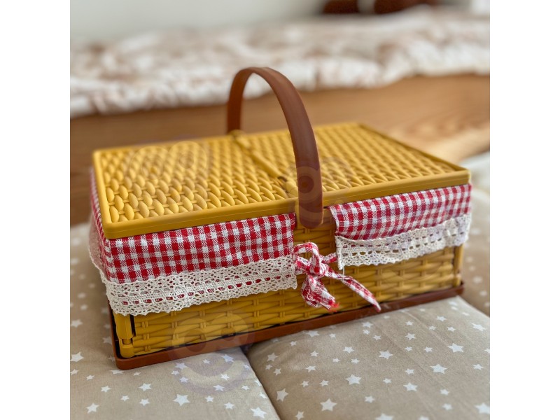 - - 1 składany koszyk piknikowy z ozdobnym wykończeniem