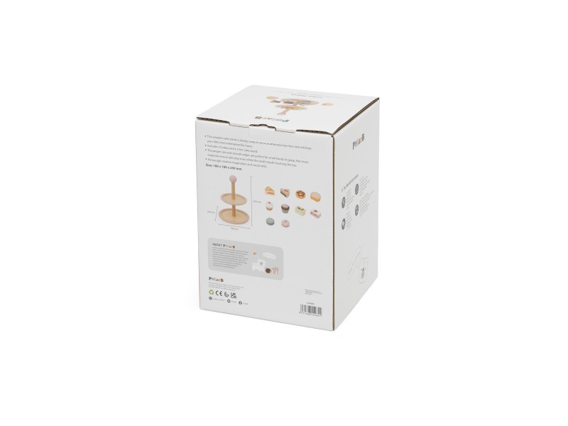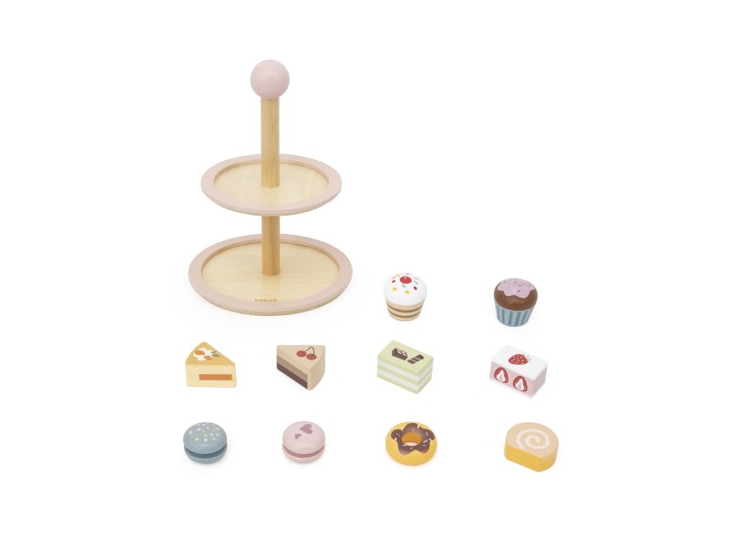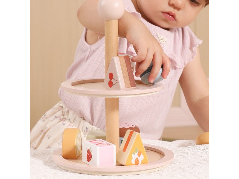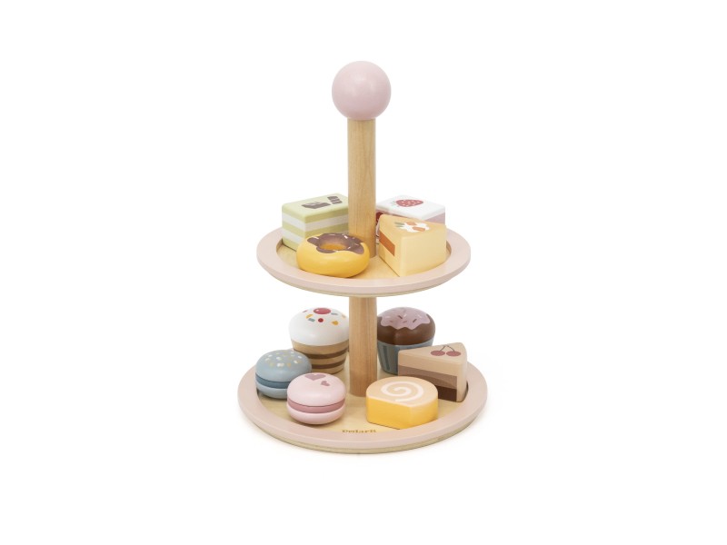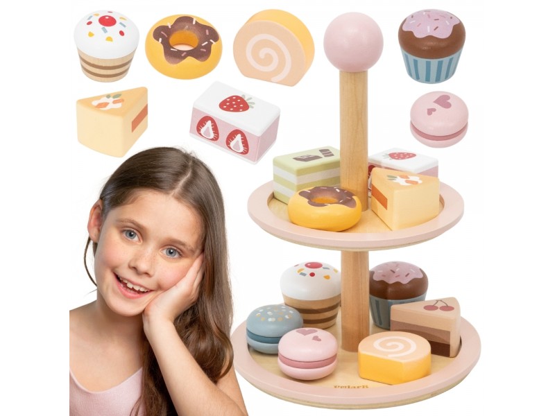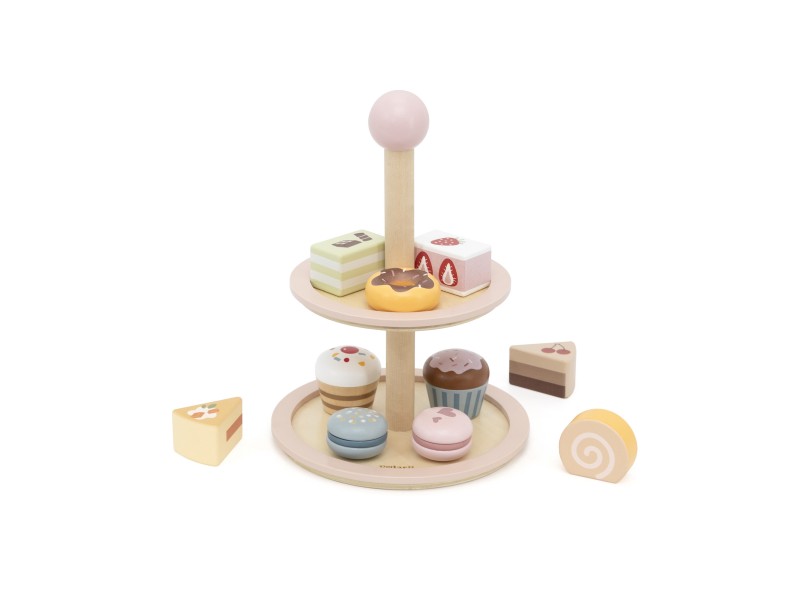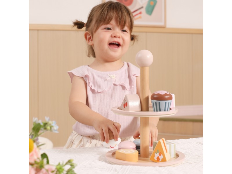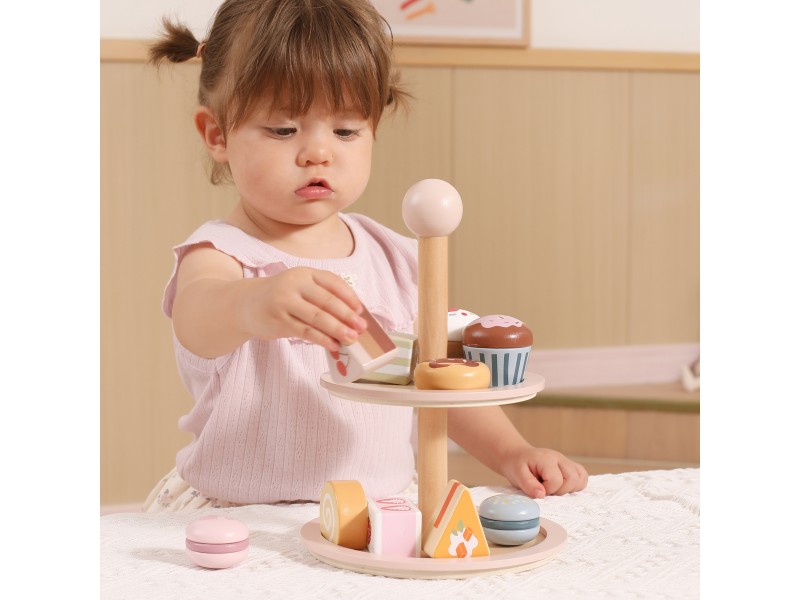 Zaproś swoje dziecko do świata zabawy w kawiarenkę! Drewniany stojak na ciasto marki Viga PolarB to elegancka, dwupoziomowa patera z kolorowymi słodkościami, która umili każdą popołudniową herbatkę. Zestaw zawiera aż 10 uroczych ciasteczek i torcików, wykonanych z bezpiecznych, nietoksycznych materiałów. Gładkie krawędzie i idealny rozmiar sprawiają, że zabawka jest wygodna do chwytania przez małe rączki. To nie tylko świetna zabawa, ale także sposób na rozwój wyobraźni, kreatywności i umiejętności społecznych dziecka.