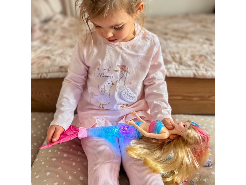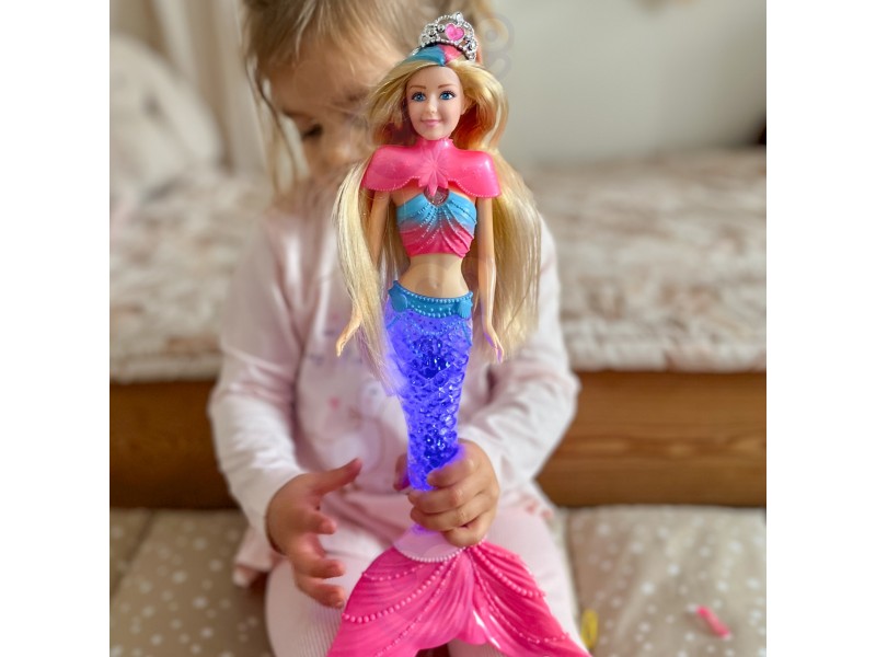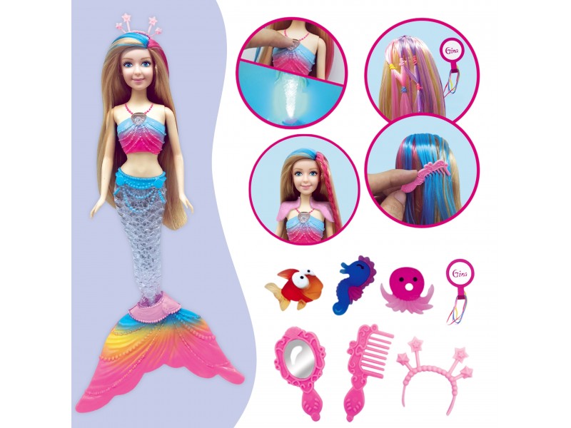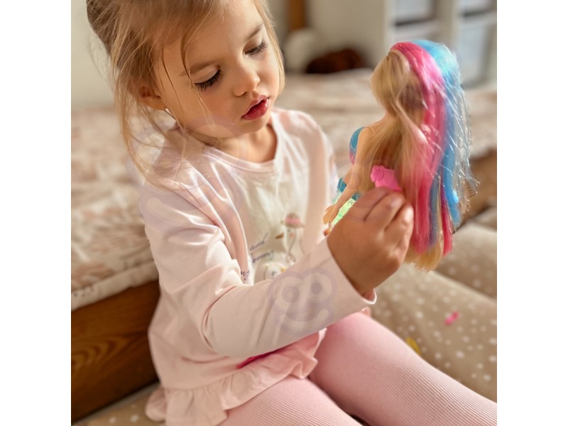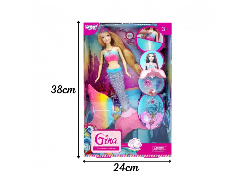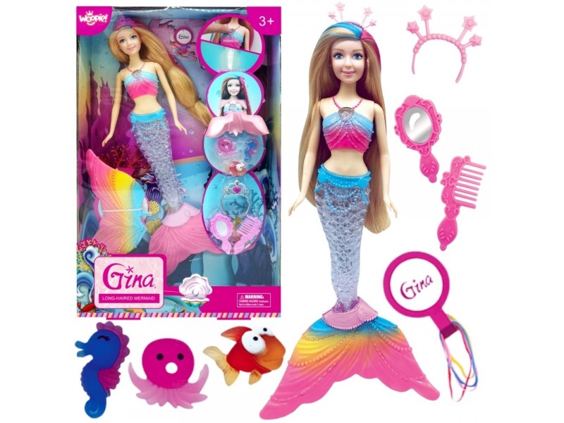 Syrenka Gina od marki WOOPIE to połączenie piękna, magii i kreatywnej zabawy! Lalka świeci i gra, a jej tęczowy ogon i długie blond włosy sprawiają, że wygląda jak bohaterka z bajki. Dzięki licznym akcesoriom do czesania i stylizacji każde dziecko może poczuć się jak prawdziwy stylista fryzur. To idealna zabawka dla małych marzycieli od 3 roku życia, która przeniesie je do podwodnej krainy pełnej fantazji.