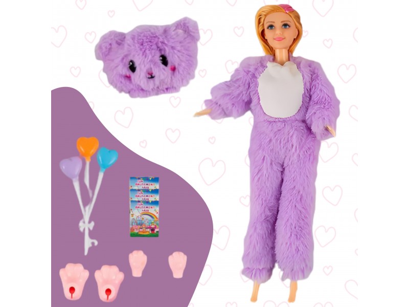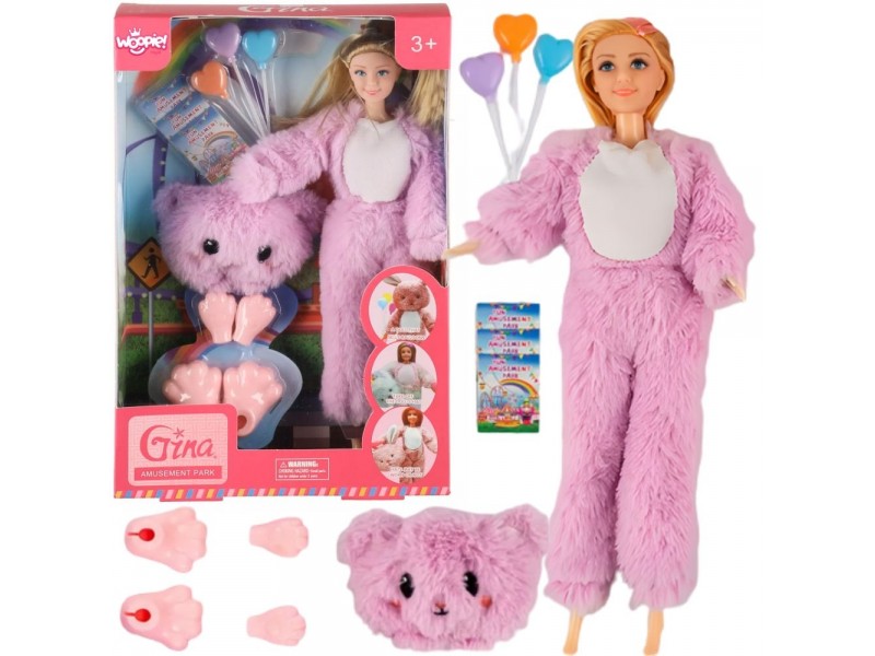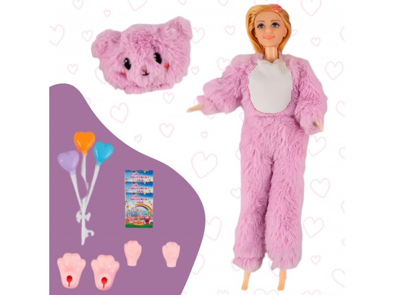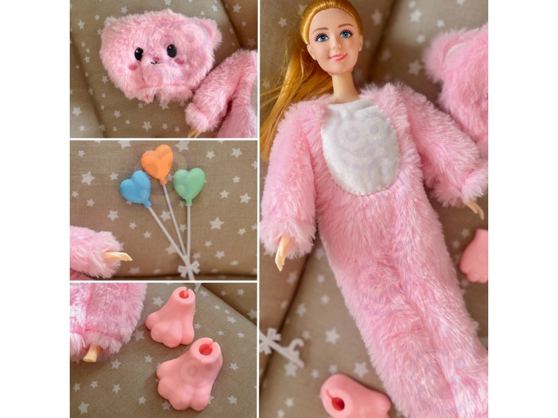 - - Lalka w stroju różowego misia
