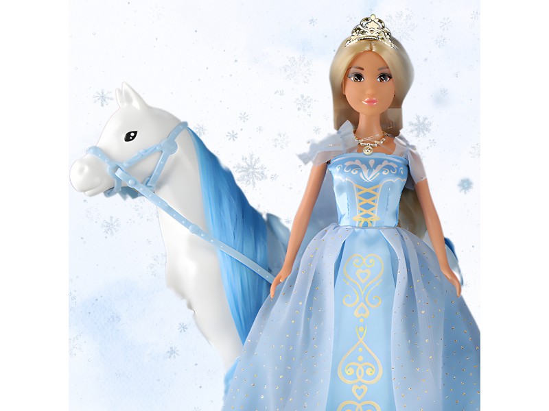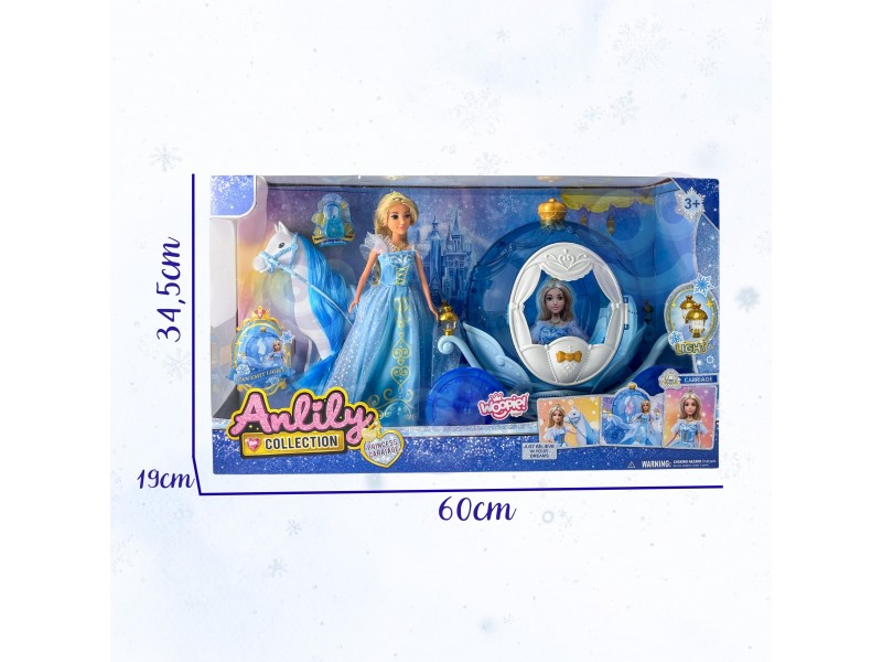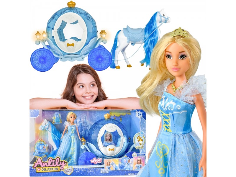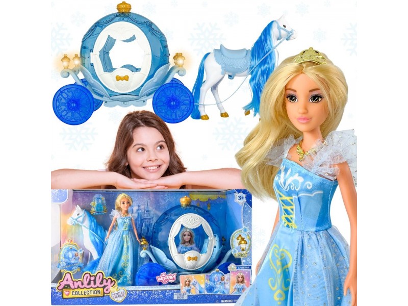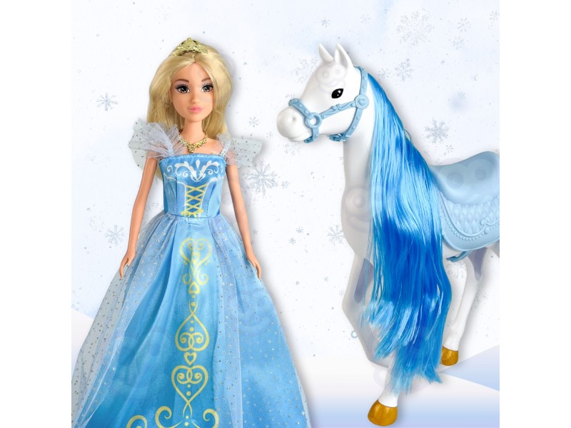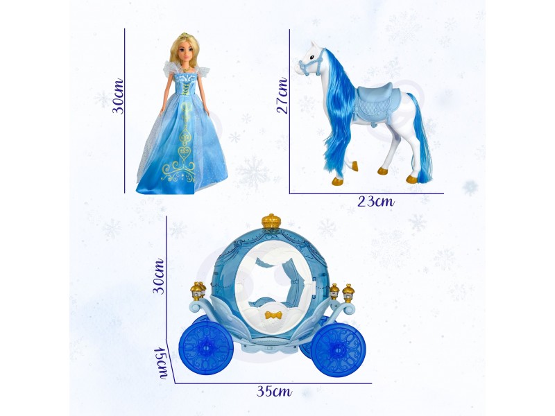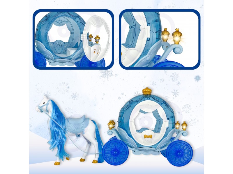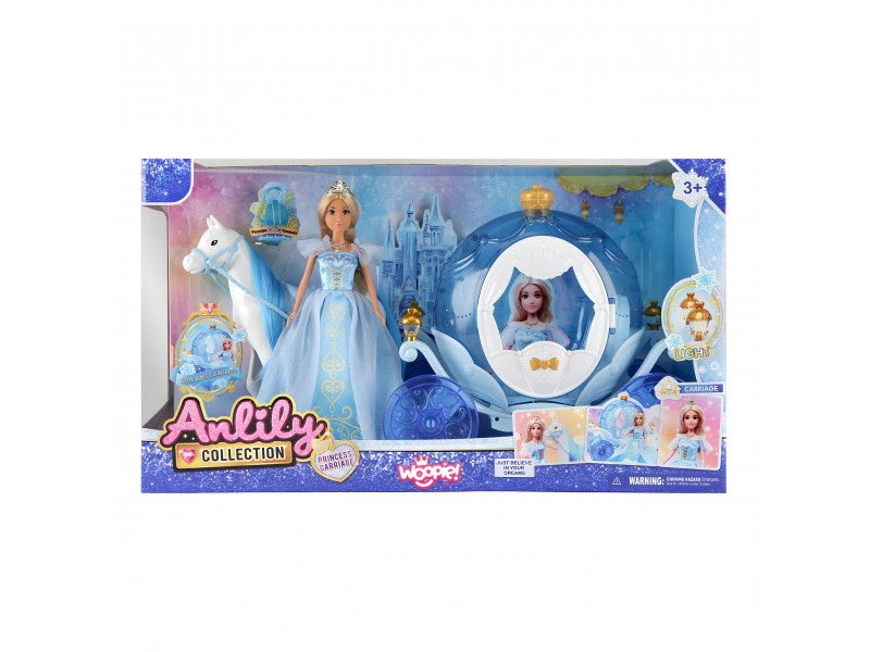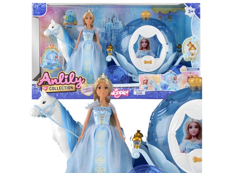 Wyrusz w magiczną podróż do krainy lodu z zestawem LODOWA KSIĘŻNICZKA I MAGICZNY POWÓZ ŚWIECĄCY od marki Woopie! Ten bajkowy zestaw to idealny prezent dla małych królowych śniegu od 3 roku życia. W skład zestawu wchodzi piękna lalka księżniczka w błękitnej, połyskującej sukni, elegancki biały koń oraz lodowy powóz w kształcie dyni. Powóz ma unikalny, błękitny, przezroczysty design i posiada niesamowite efekty świetlne podczas zabawy. Lalka ma długie blond włosy i królewski diadem. Odgrywanie ról nigdy nie było tak wciągające!