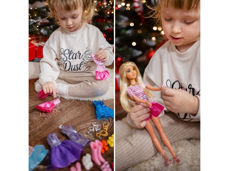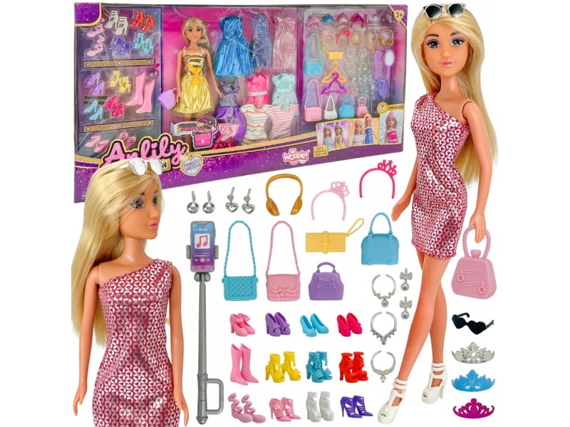 - - lalka z zestawem ubrań i akcesoriów