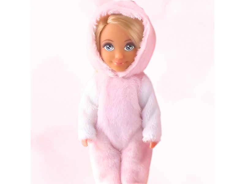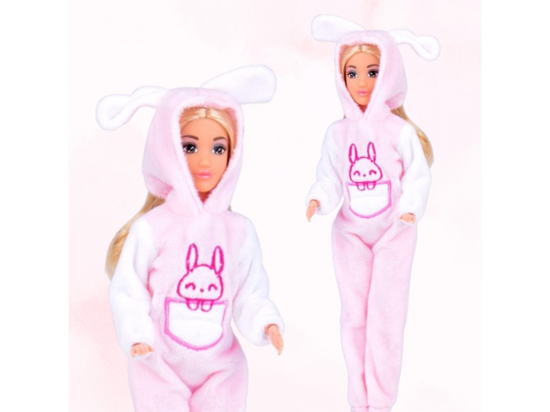 - - lalki ubrane w dopasowane różowe kombinezony króliczki