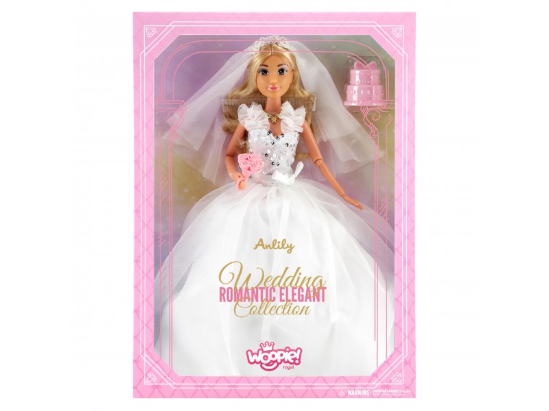 Każda dziewczynka marzy o tym, by poczuć magię najpiękniejszego dnia w życiu! Lalka Lily w przepięknej sukni ślubnej marki Woopie to wyjątkowa zabawka, która wprowadzi małą właścicielkę w świat elegancji, romantycznych ceremonii i królewskich kreacji. Śliczna panna młoda w białej, tiulowej sukni z ozdobnym gorsetem i delikatnym welonem zachwyca dbałością o każdy szczegół. W dłoni trzyma uroczy bukiet róż, a jej długie, jasne włosy idealnie komponują się z subtelnym makijażem.