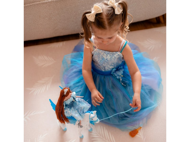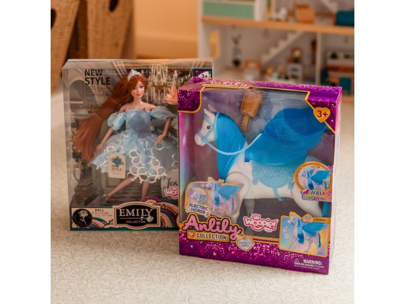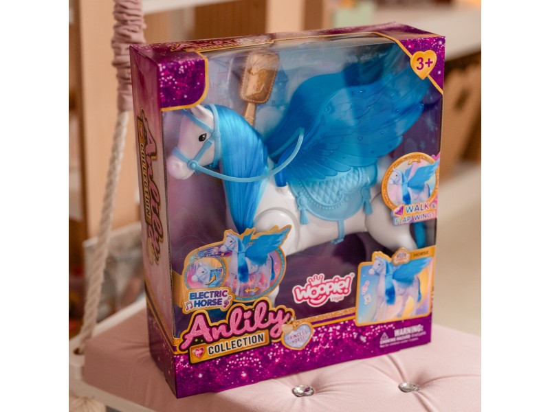 Odkryj niezwykłego Interaktywny Konik Lily, który przeniesie Twoje dziecko do świata magii i fantazji! Ten piękny, biały rumak z turkusową grzywą i skrzydłami to idealny towarzysz każdej zabawy. Dzięki funkcji elektrycznej koń porusza się samodzielnie, dodając emocji i realizmu do bajkowych historii. W zestawie znajdziesz także złotą szczotkę do czesania jego lśniącej grzywy i ogona. To idealny prezent dla małej księżniczki, który zapewni godziny kreatywnej i wciągającej zabawy!
