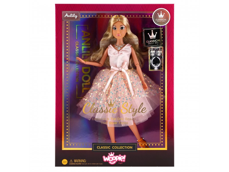 Poznaj wyjątkową lalkę Lily marki Woopie, która zachwyci każdą małą miłośniczkę elegancji i balowych kreacji! Ta urocza 30-centymetrowa lalka prezentuje się zjawiskowo w delikatnej sukni z połyskiem różu, delikatnym tulem i uroczy koralikami. Długie, złociste włosy Lily do ramion kuszą do nieskończonych stylizacji i tworzenia bajkowych fryzur, a modne dodatki – delikatny naszyjnik, kolczyki i eleganckie buciki dopełniają jej wyjątkowy image.