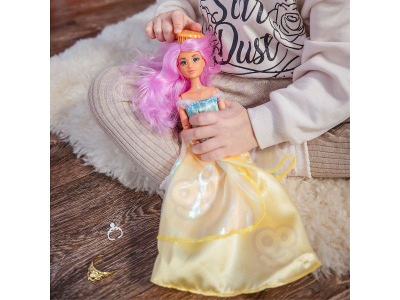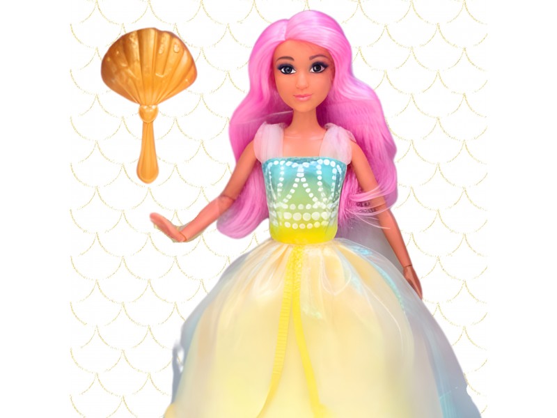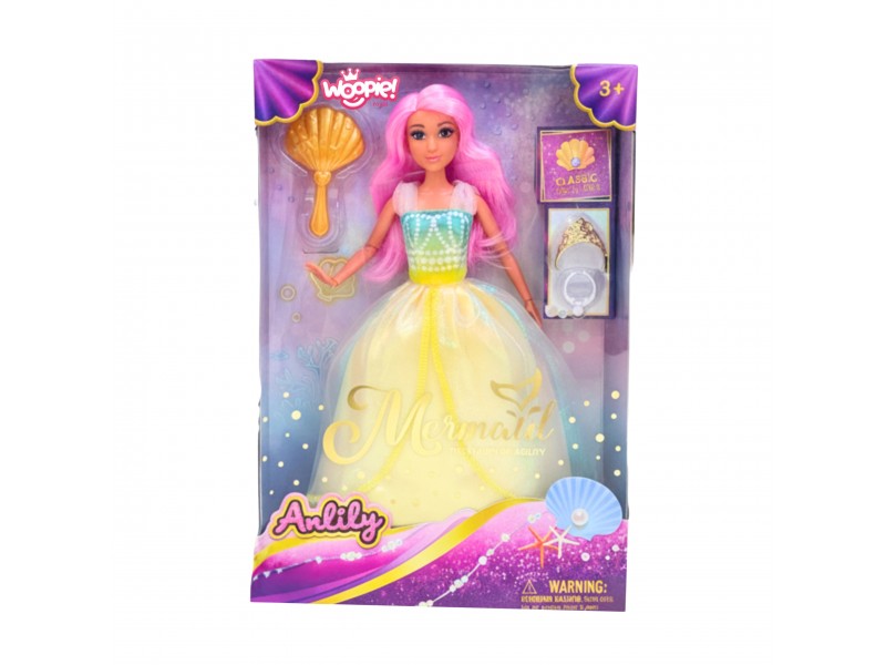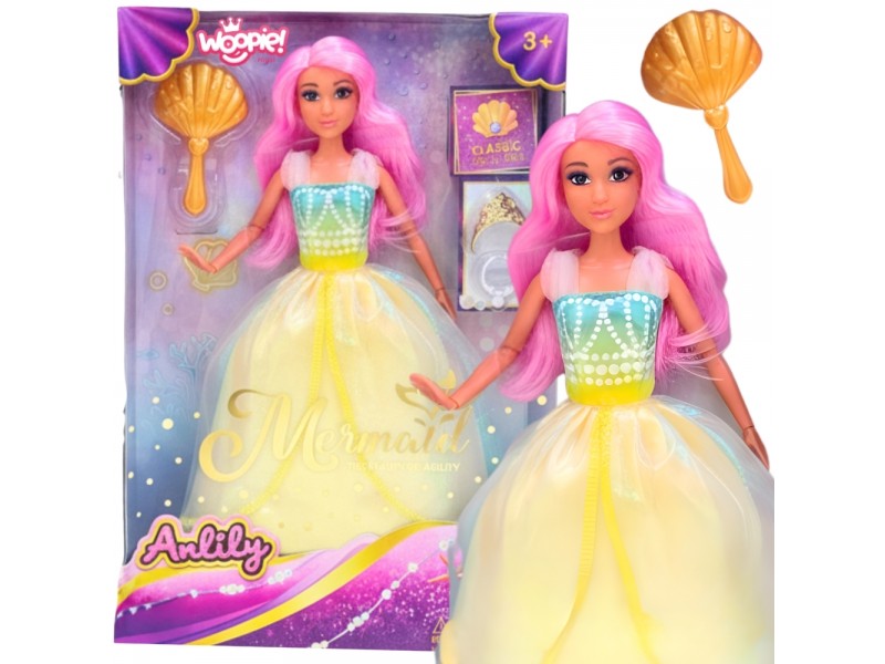 Poznaj uroczą Księżniczkę Lily od marki Woopie– lalkę inspirowaną podwodnym światem syrenek. Jej długie, różowe włosy zachęcają do czesania i tworzenia fantazyjnych fryzur. Błyszcząca, pastelowa suknia w odcieniach morskiej piany sprawia, że wygląda jak prawdziwa księżniczka z oceanu. W zestawie znajduje się złoty grzebień w kształcie muszli oraz elegancki pierścionek, które dopełniają stylizacje. To doskonały prezent dla dzieci od 3 lat, który rozwija wyobraźnię i pozwala tworzyć niezliczone, bajkowe historie.