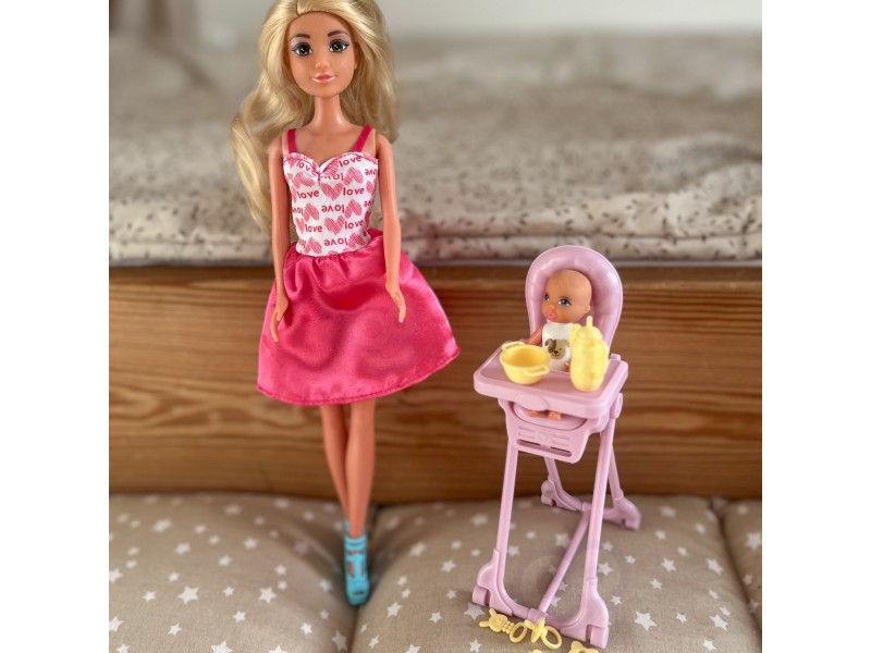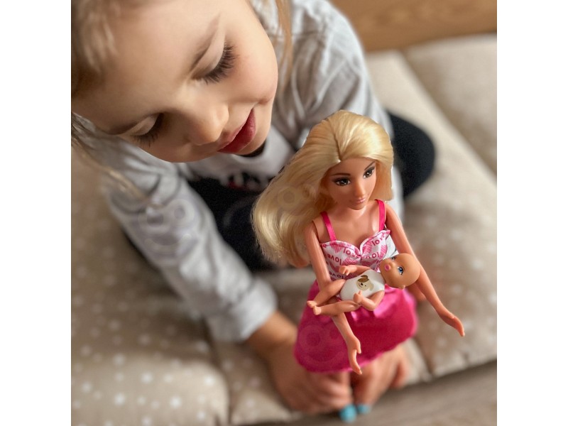 - - Lalka-mama z długimi, czesanymi włosami i ruchomymi kończynami