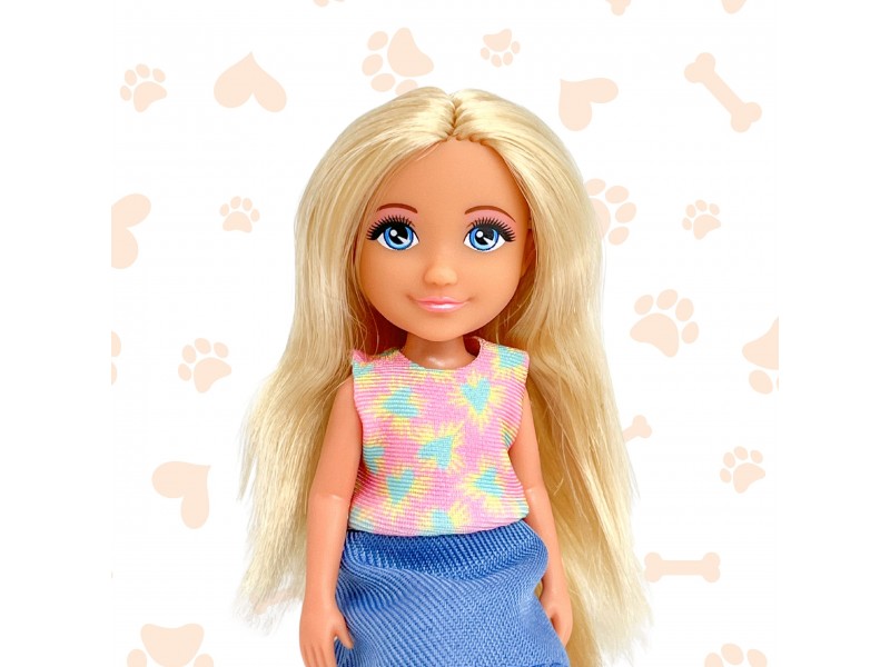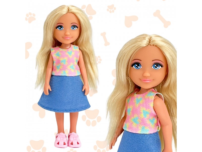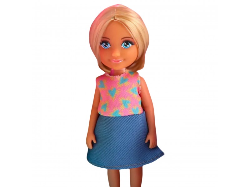 - - Lalka Ankiki z blond włosami, ubrana w spódnicę i top w serduszka.