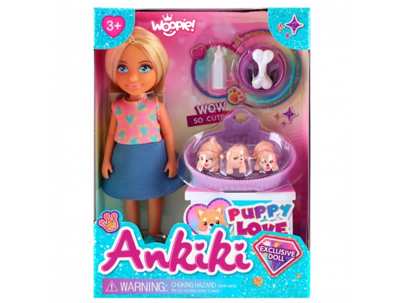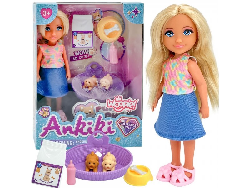 Odkryj wzruszający świat opieki nad zwierzętami z uroczą Laleczką Ankiki i jej trzema szczeniaczkami od marki WOOPIE ROYAL! Ten wyjątkowy zestaw, to idealna propozycja dla każdego małego miłośnika zwierząt. Lalka Niki, w modnym stroju, jest gotowa by zająć się swoimi małymi pupilami, dając im jedzenie i kość do zabawy. Cały zestaw doskonale rozwija poczucie odpowiedzialności oraz empatię u dziecka. Podaruj radość i naukę przez zabawę!