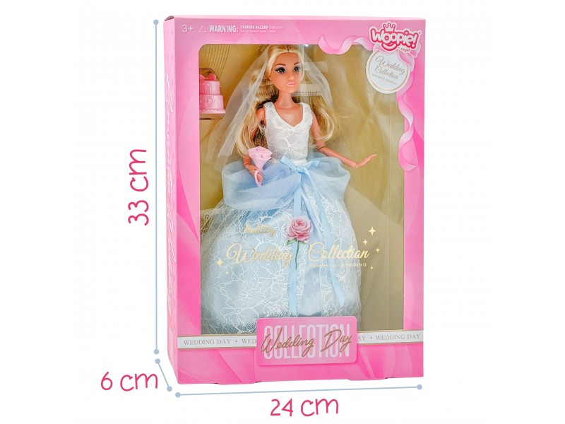 Lalka Lily Panna Młoda od marki Woopie to wyjątkowa propozycja, która pozwoli każdej dziewczynce przeżywać magiczny Dzień Ślubu. Lalka ma na sobie efektowną suknię ślubną z koronkową górą i wielowarstwowym, tiulowym dołem. Całość dopełniają welon oraz bukiet w kształcie serca. W zestawie znajduje się również mini tort weselny. Jest to idealna zabawka do odgrywania scenariuszy związanych ze ślubem i weselem, rozwijając przy tym wyobraźnię i umiejętności społeczne. Produkt przeznaczony jest dla dzieci od 3 roku życia.