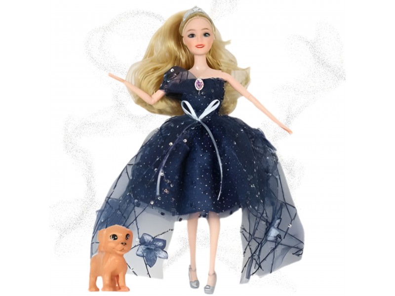 - - Stylowa i elegancka lalka w pięknej granatowej sukni z połyskiem